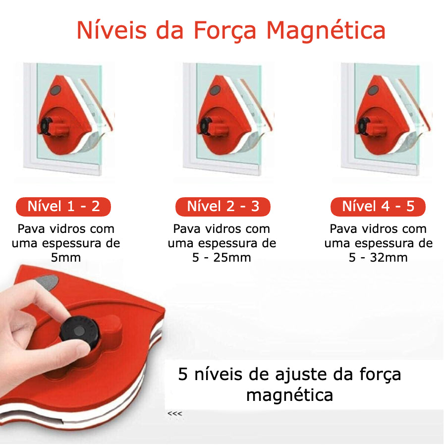 Apto para vidros duplos, com este limpador de vidros consegue ajustar a força magnética consoante a espessura dos vidros, para que não corra o risco de os partir.