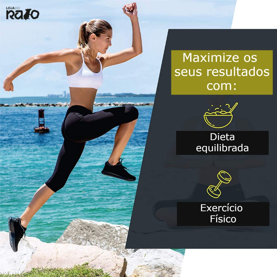 Efeito adelgaçante imediato na zona abdominal, glúteos e pernas.