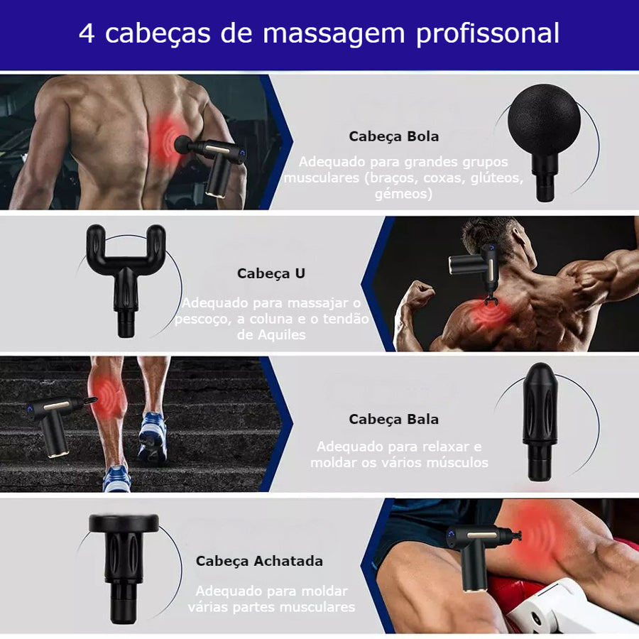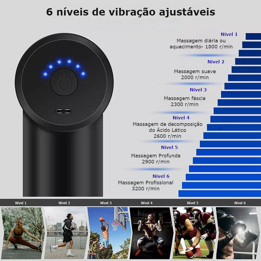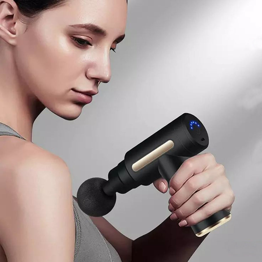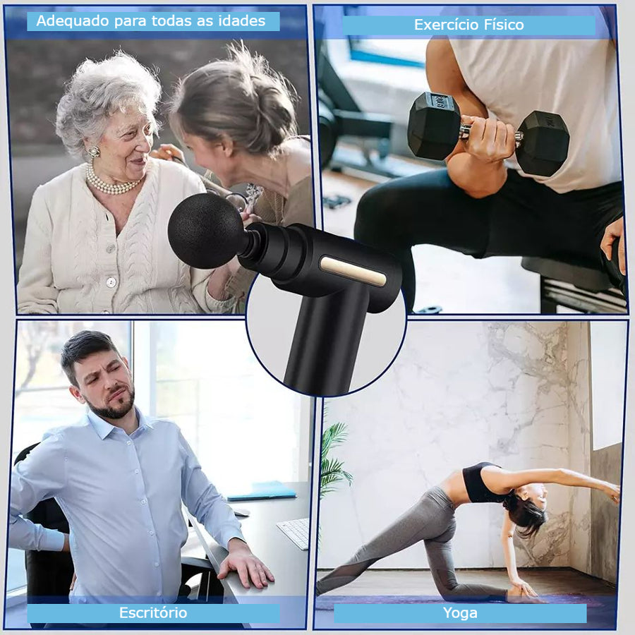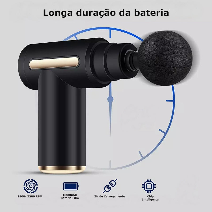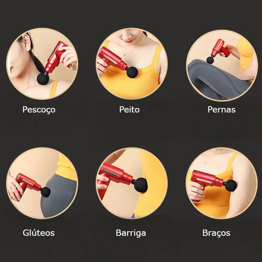 A Pistola de Massagem Muscular Portátil em formato de pistola ajuda a reduzir a dor e tensão muscular, promove a circulação sanguínea, aperfeiçoa a mobilidade e melhora a condição muscular.