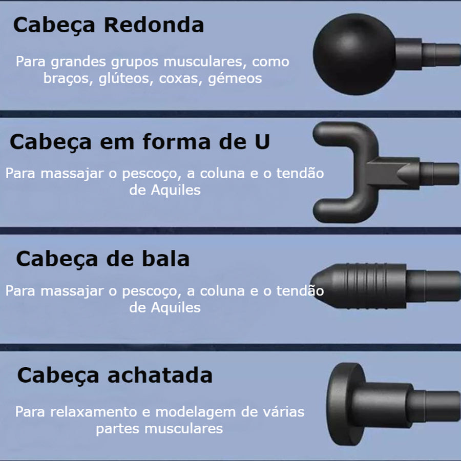 ✅ Inclui 4 cabeças diferentes, tornando mais fácil alcançar músculos de difícil acesso;