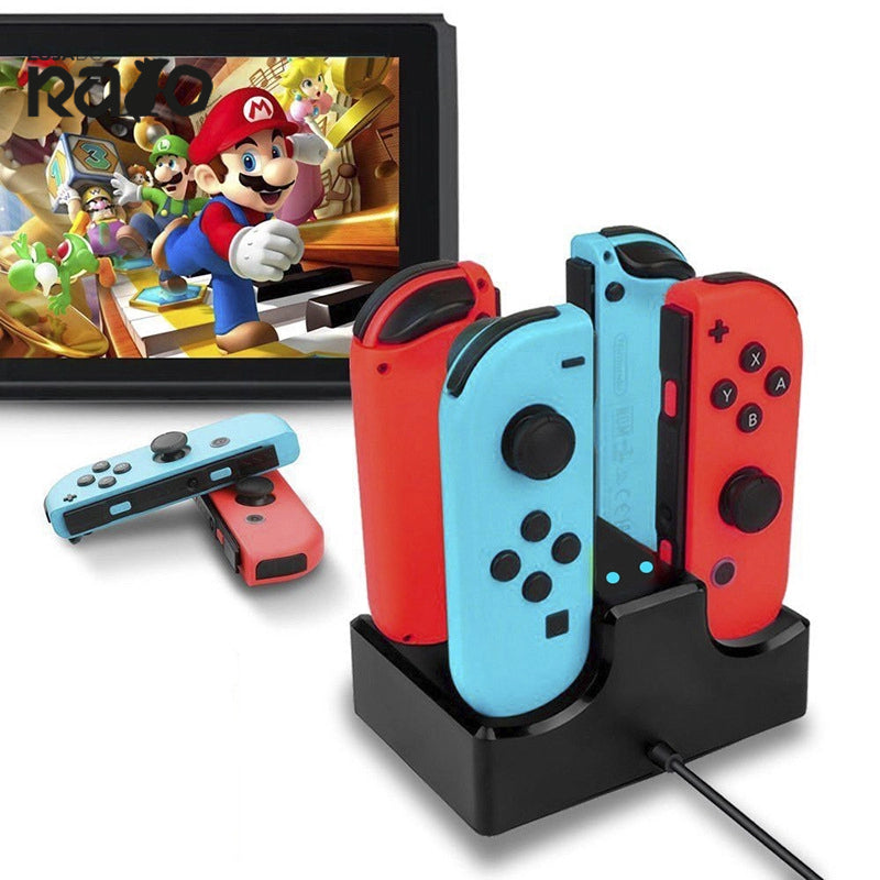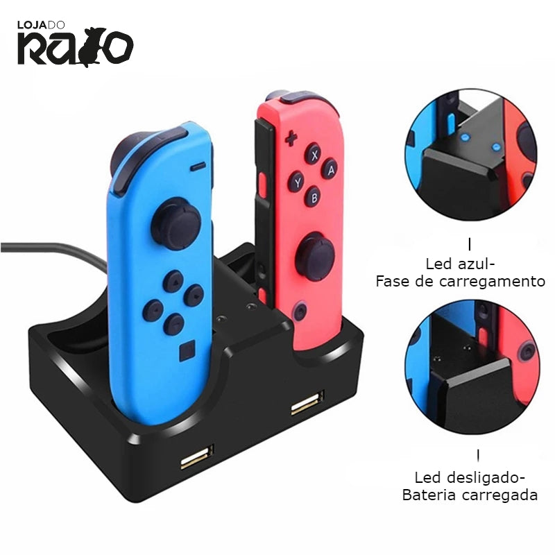 Base de carregador para 4 nintendo switch joy-cons. Fácil side-in design conecta cada joy-con ao carregador enquanto leds individuais indicam o nível de carga para cada joy-con.