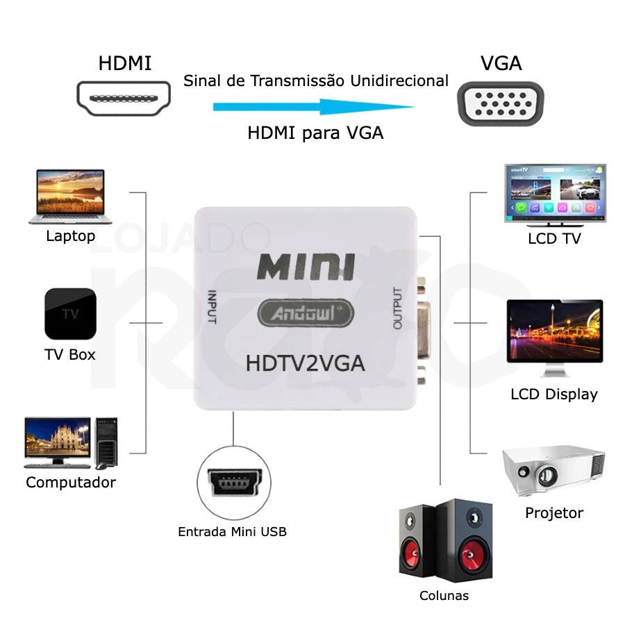Ideal para ligar dispositivos modernos a monitores ou projetores VGA, este adaptador oferece alta qualidade de imagem e som.