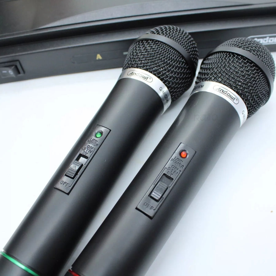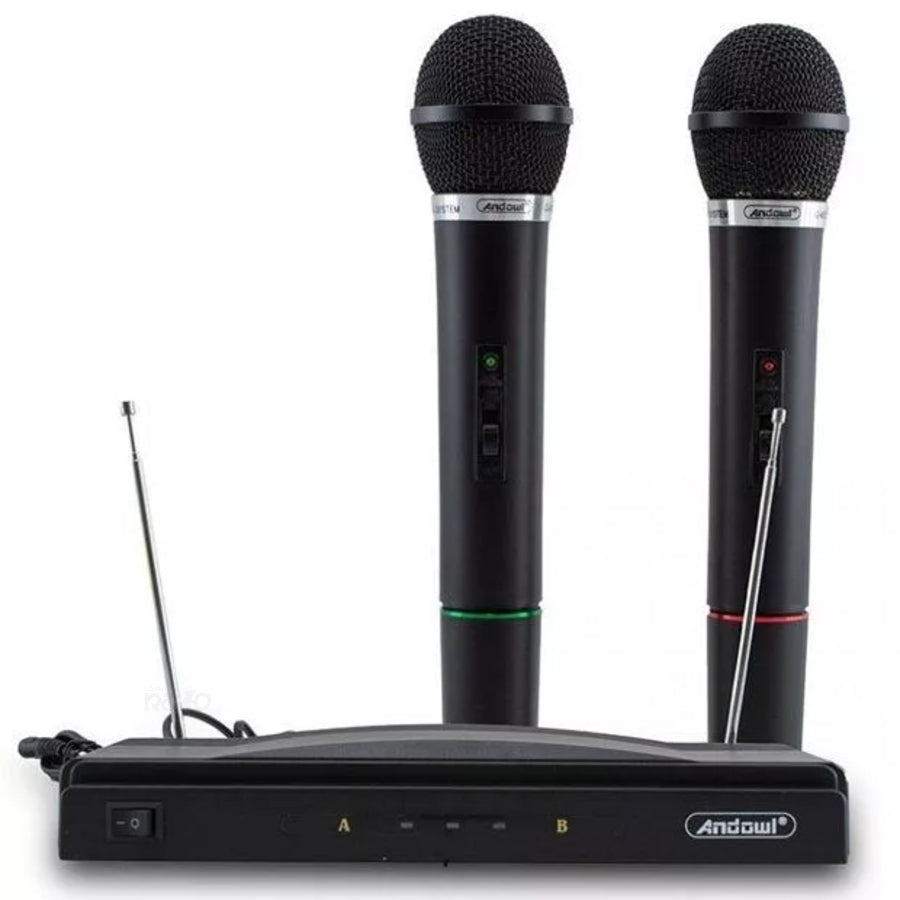 Transforme qualquer festa numa verdadeira experiência musical com o conjunto de microfones, ideal para festas em casa ou casamentos. Fácil de utilizar, consegue conectar a vários tipos de aparelhos como computadores ou guitarras, e disfrutar de sessões de karaoke em conjunto ou sozinho.