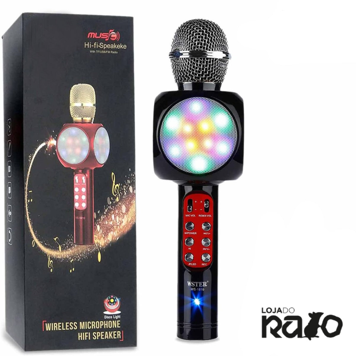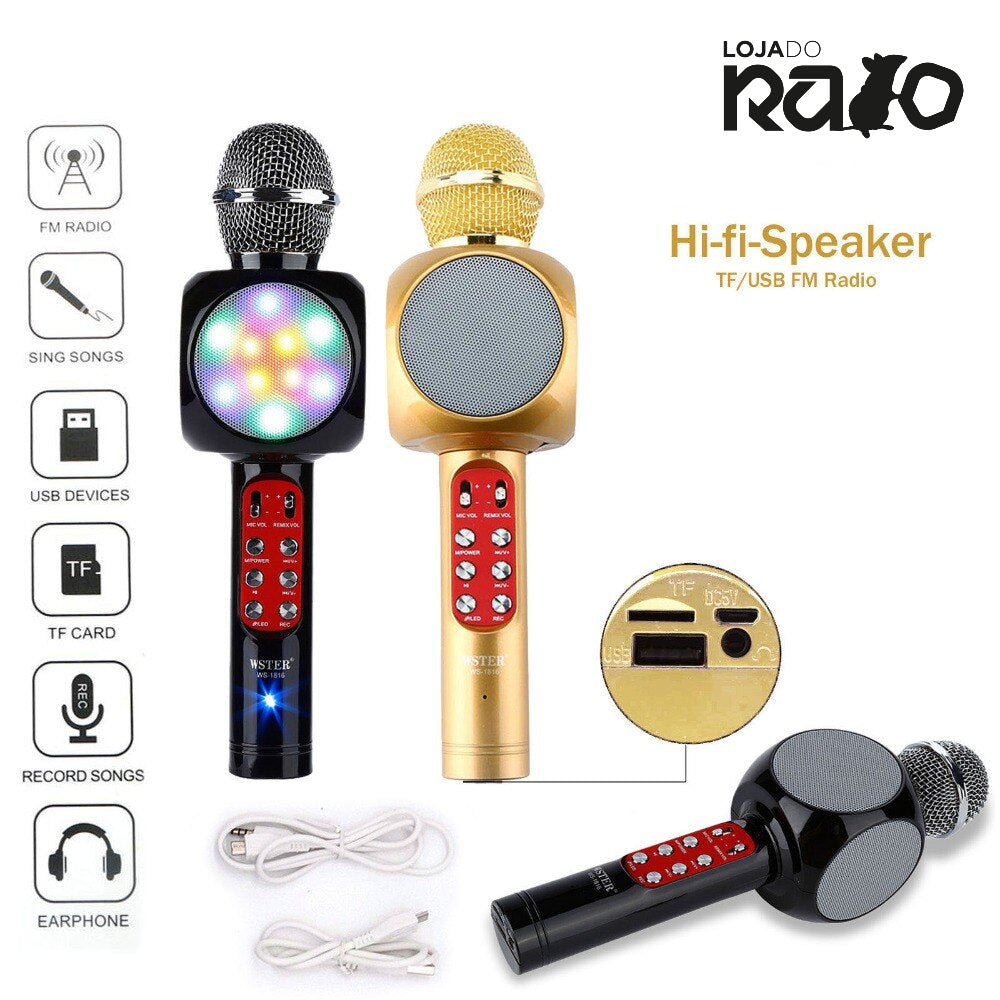 O Microfone e altifalante permite que cante como quiser. A luz disco LED embutida pisca com a música, o que cria um ambiente fantástico .