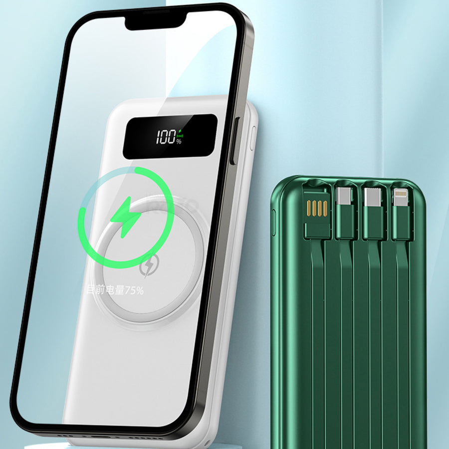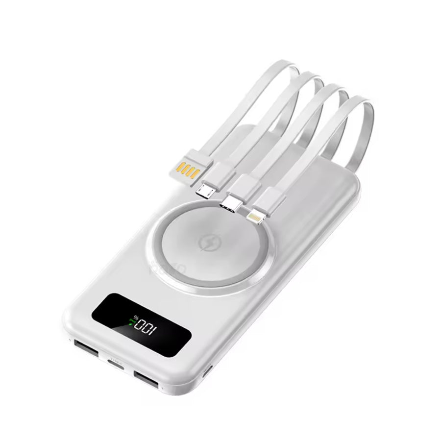 Com uma capacidade impressionante de 20000mAh, esta powerbank é o acessório indispensável para o seu dia a dia. Equipado com múltiplas opções de carregamento, incluindo portas USB, Tipo-C e carregamento wireless, oferece uma solução prática e versátil para manter os seus dispositivos sempre ligados.
