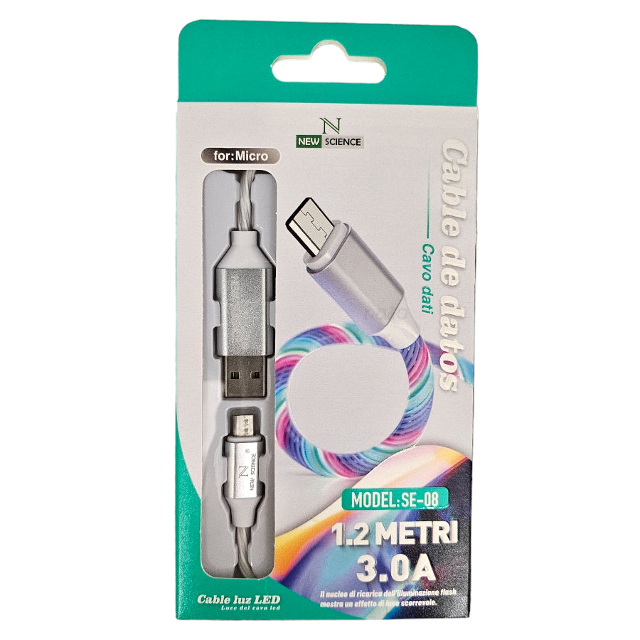 Um cabo que irá iluminar os espaços em que o utilizar, ideal para carregar dispositivos móveis ou para transferir dados.