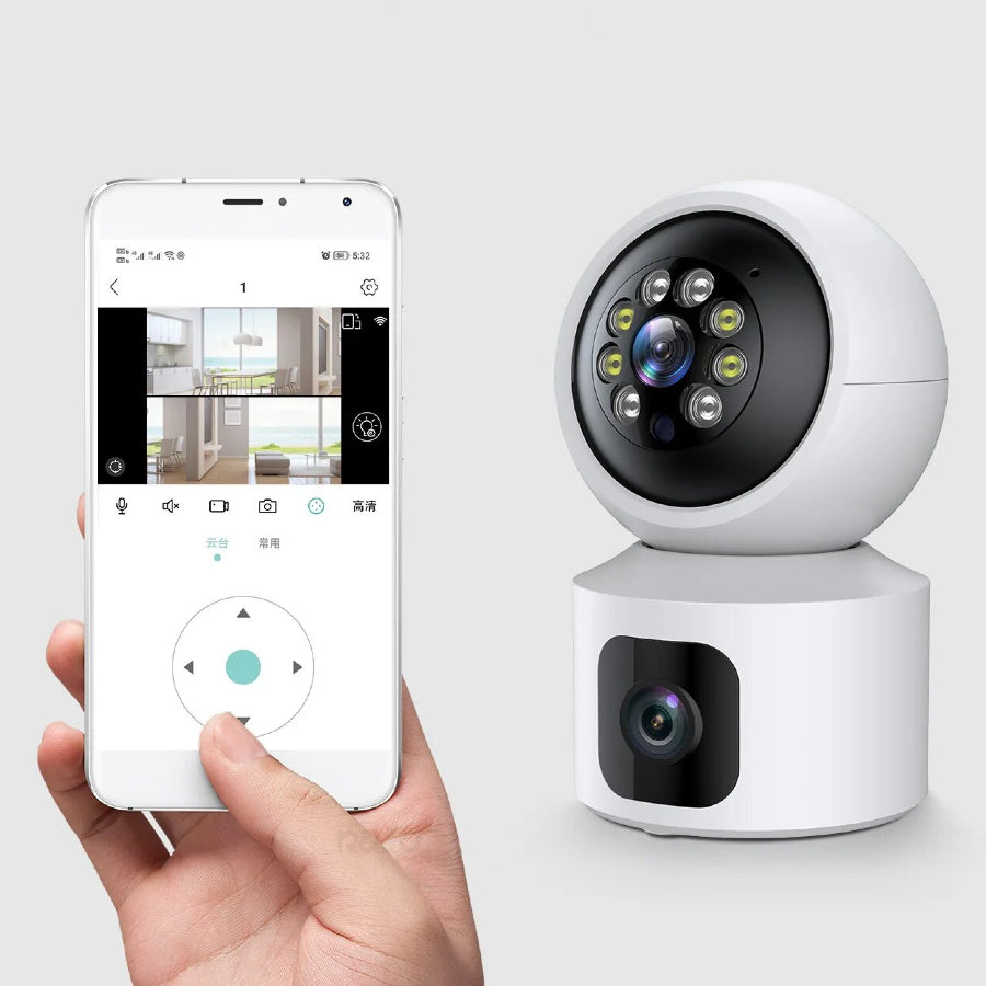 Proteja os seus espaços e os seus bens com a câmara de vigilância WiFi dupla!