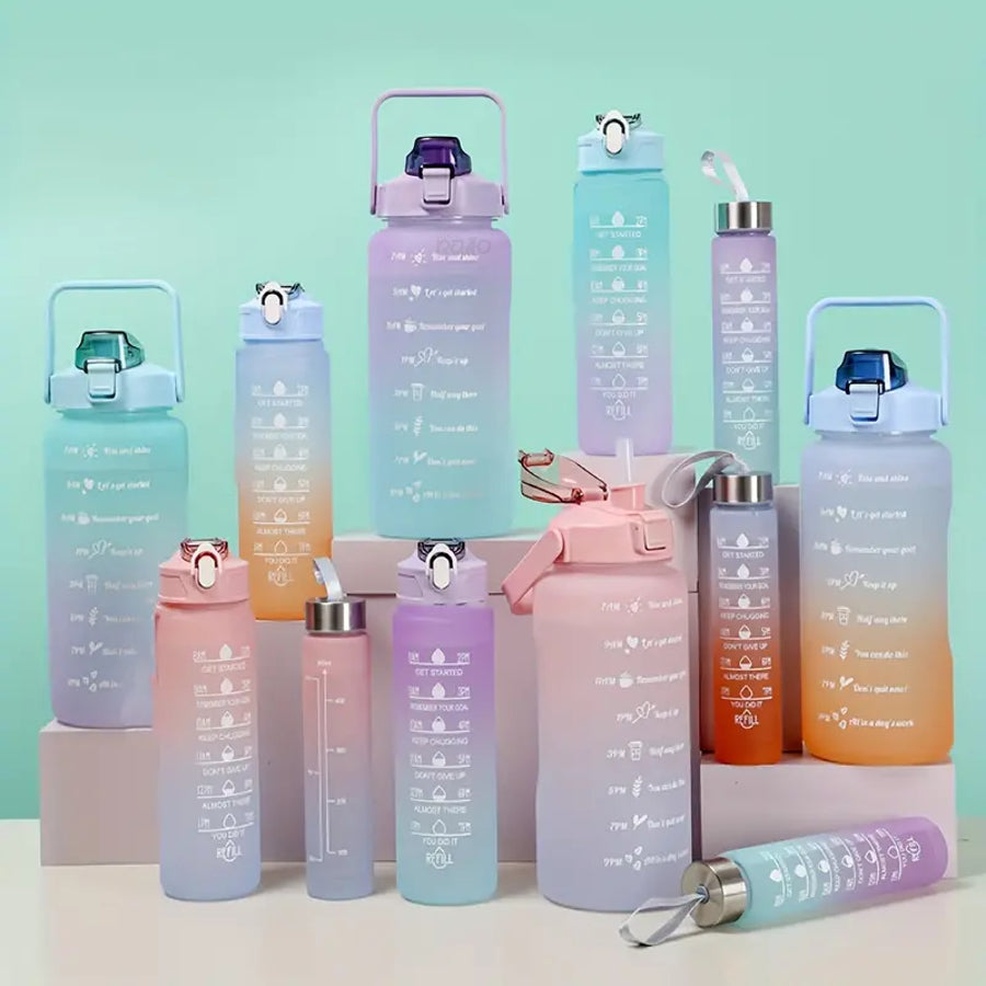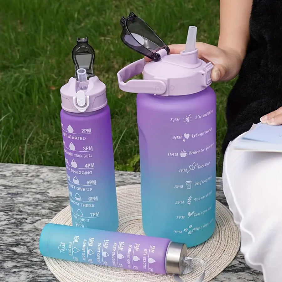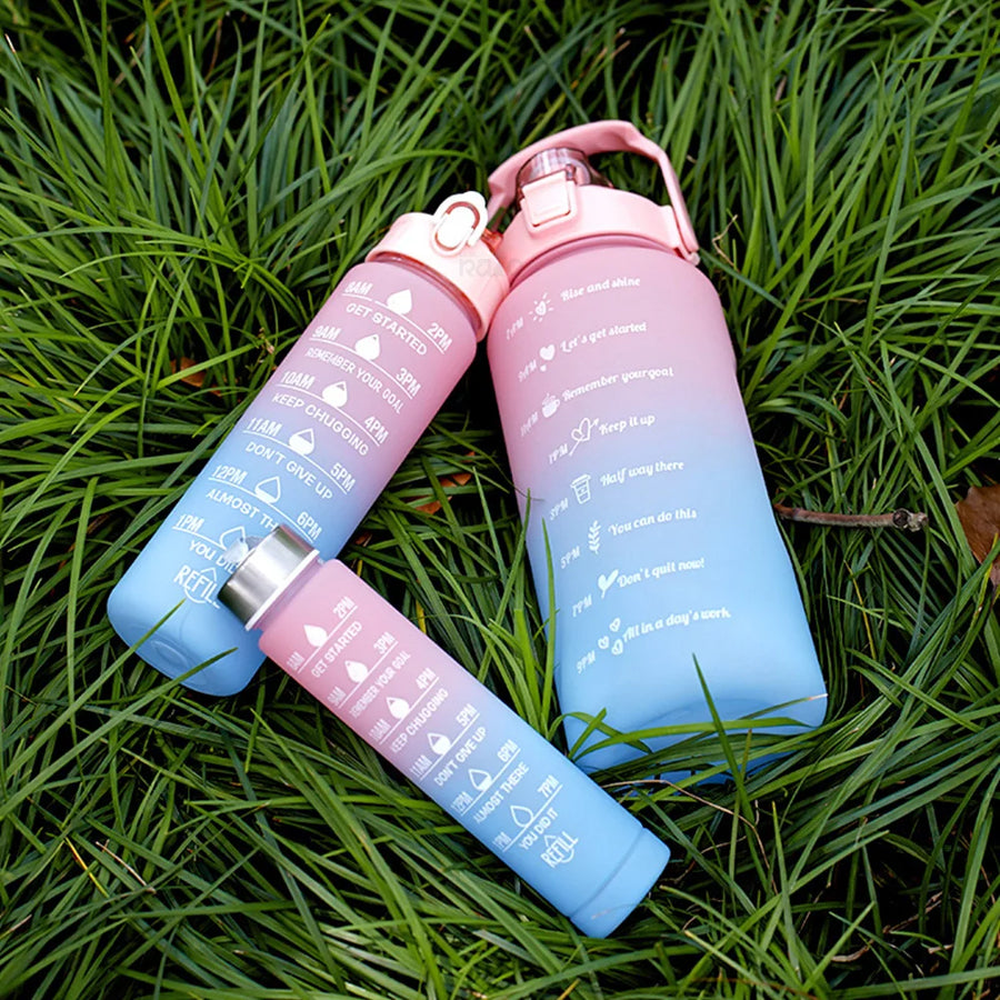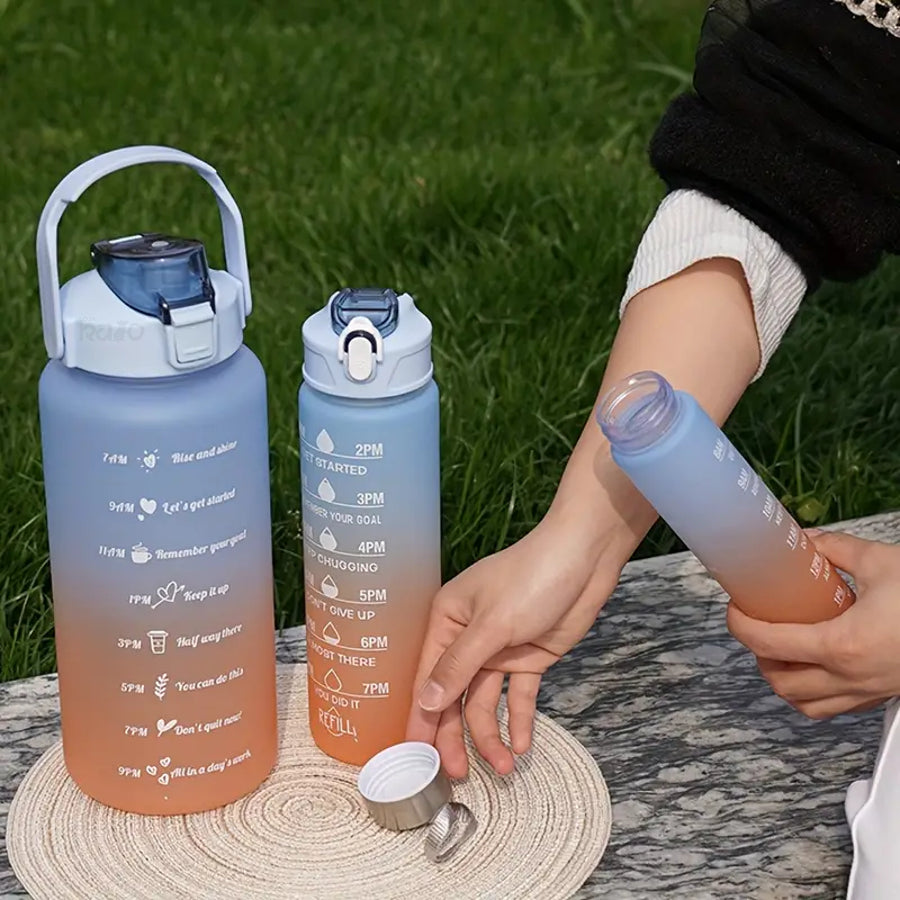 Transforma a tua rotina com este Kit de 3 Garrafas Motivacionais, pensado para te acompanhar em qualquer momento do dia — seja no trabalho, no ginásio ou durante caminhadas.