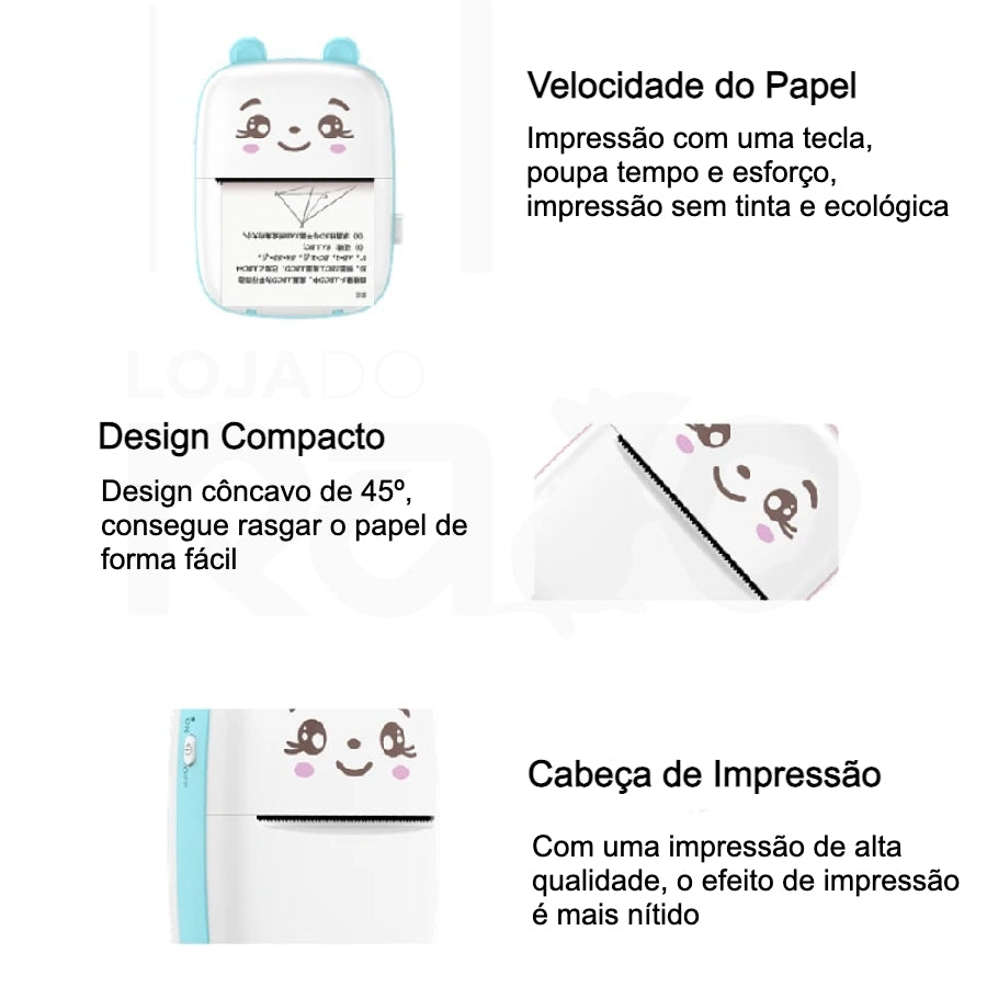 Utiliza a tecnologia avançada de impressão térmica, não sendo precisos cartuchos de tinta, com uma cabeça de impressão de alta qualidade, apenas imprime a preto e branco.