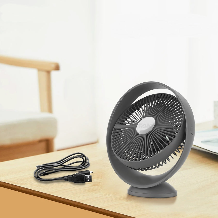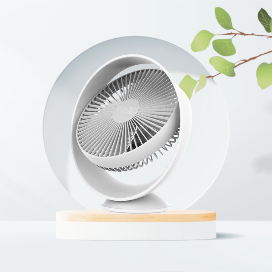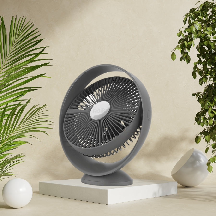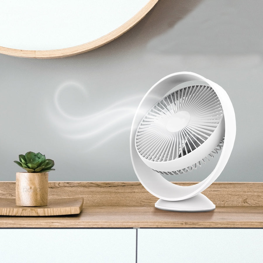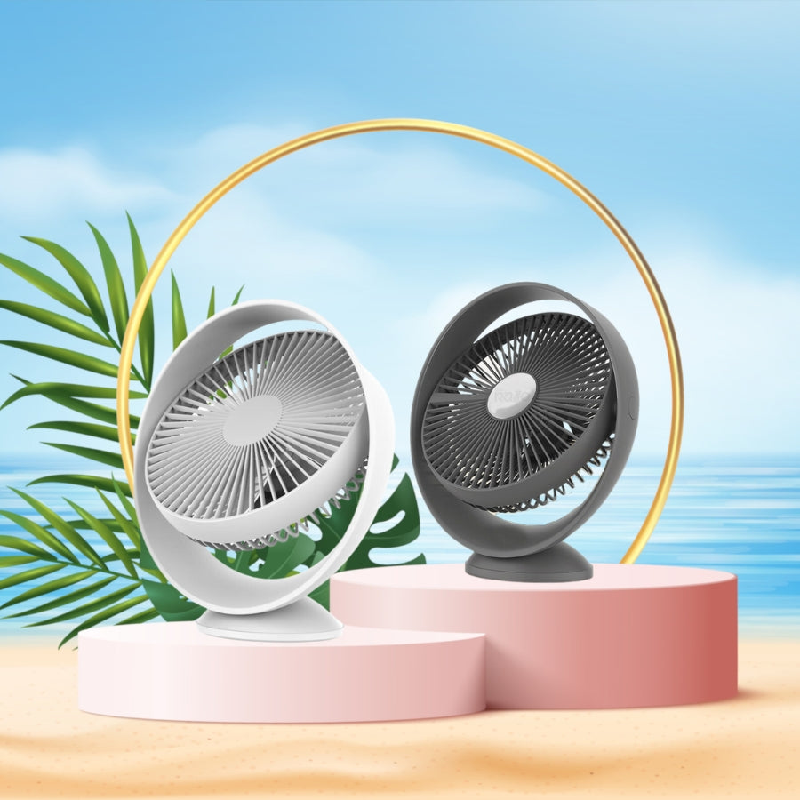 Ventoinha portátil, com um design ergonómico e compacto, pode colocar em qualquer superfície plana.