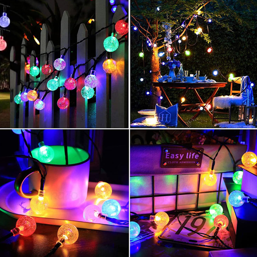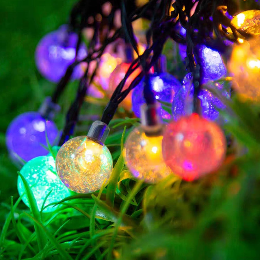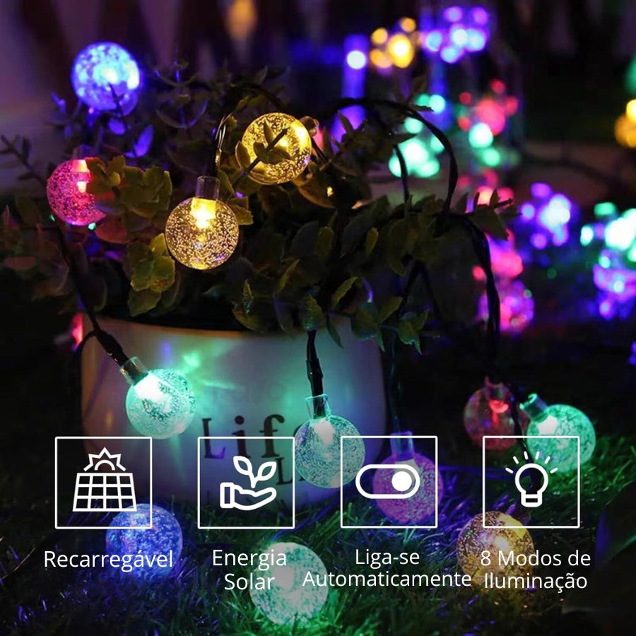 A grinalda solar LED bolas coloridas é uma opção encantadora para iluminar e decorar o seu espaço exterior.
