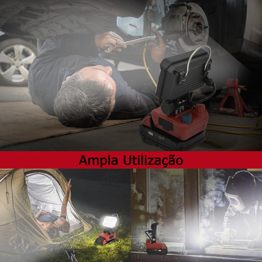 Ideal para oficinas, obras, garagens e outras atividades que exijam uma luz intensa, esta lâmpada oferece uma iluminação potente e uniforme, garantindo visibilidade perfeita em qualquer ambiente. Com um design robusto e resistente a impactos, é feita para suportar as condições mais exigentes. Fácil de transportar e posicionar, graças à sua estrutura ajustável e base estável, adapta-se a qualquer necessidade.