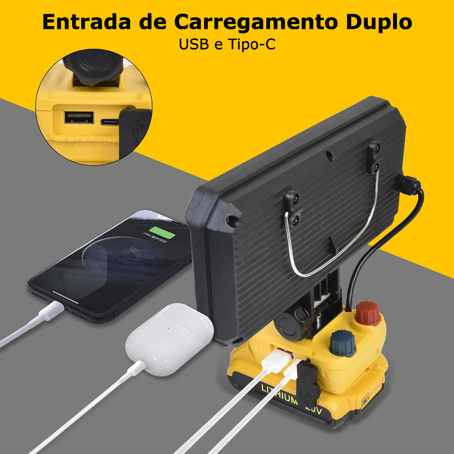 - Entradas de Carregamento de Telemóvel: USB + Tipo-C
