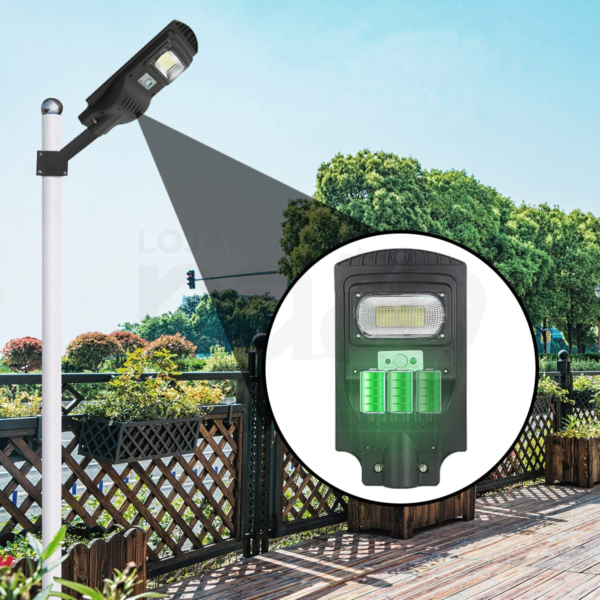 O Painel Exterior Solar 60W com Sensor de Movimento e Comando é projetado com painéis solares que efetuam o carregamento durante o dia para iluminar durante toda a noite sem necessidade de recorrer a eletricidade ou bateria extra.