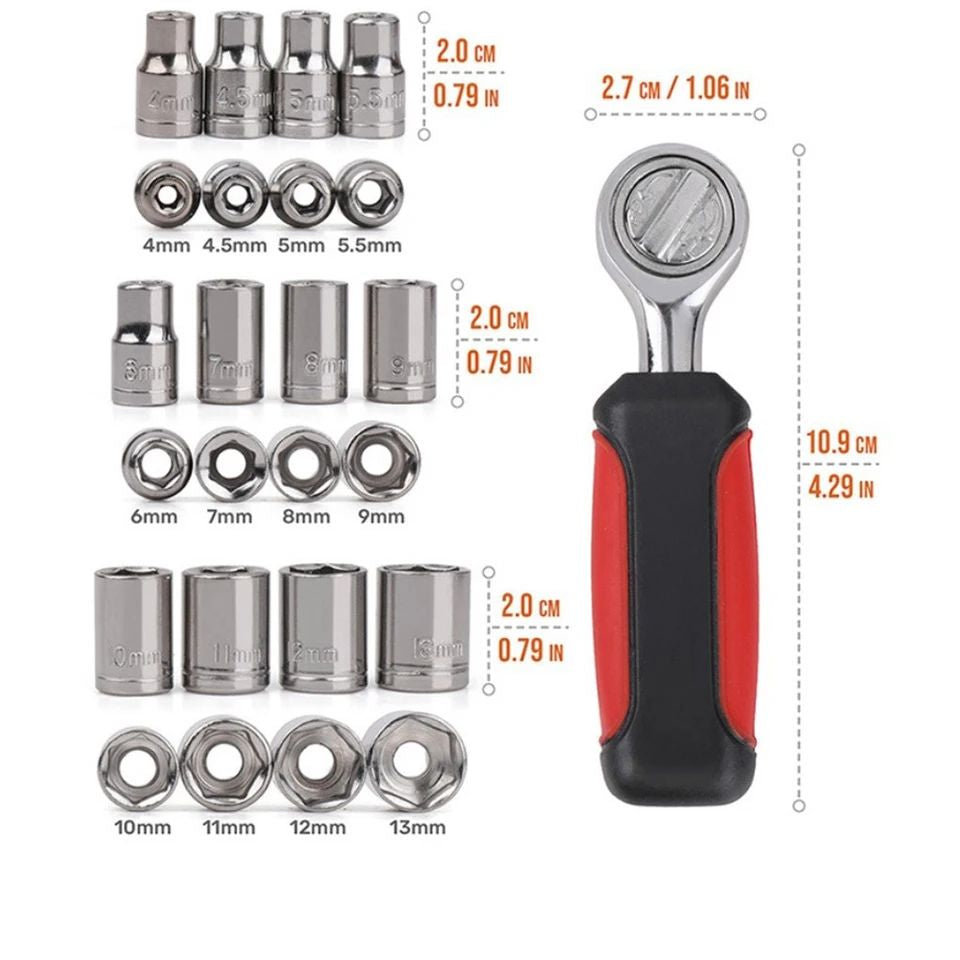 12 x Peças com tamanho: 4; 4.5; 5; 5.5; 6; 7; 8; 9; 10; 11; 12 e 13