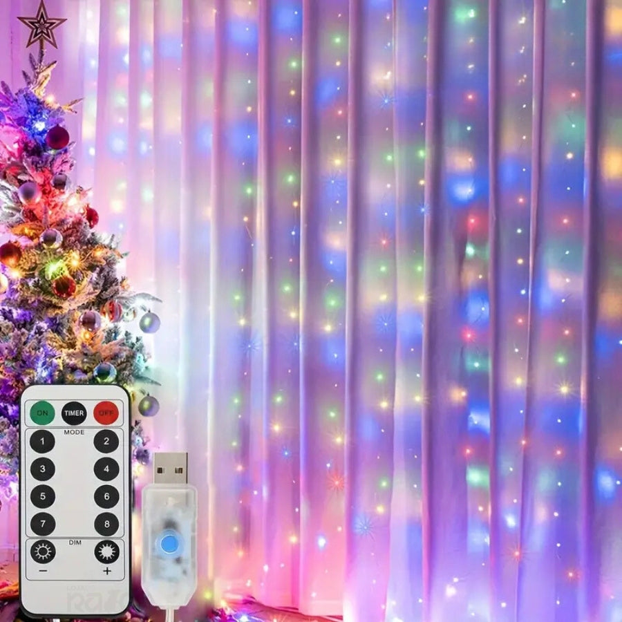 Com uma dimensão generosa de 3x2 metros, esta cortina é composta por luzes LED RGB, permitindo uma variedade de cores e efeitos de iluminação para adaptar o espaço ao seu gosto.