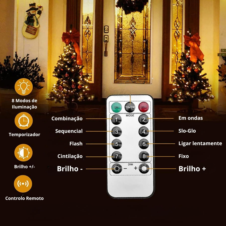 Com o comando de controlo remoto, consegue colocar temporizador, mudar o modo de iluminação e ainda aumentar e diminuir o brilho das luzes.