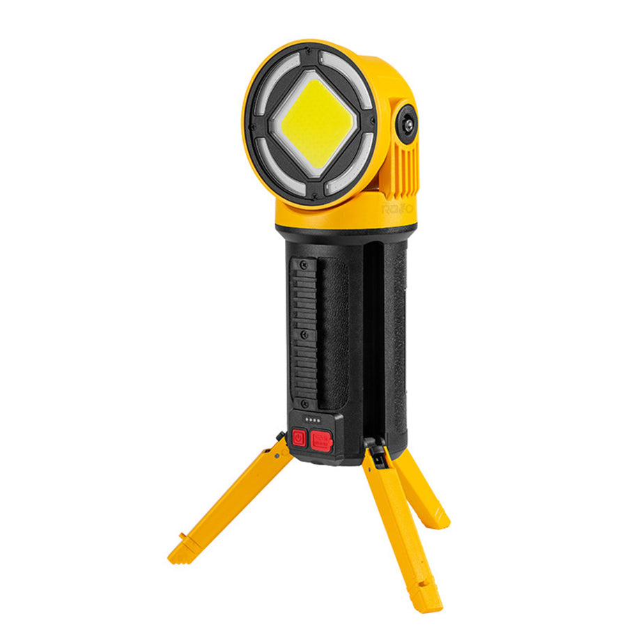 O holofote recarregável multifuncional, pode ser utilizado de várias formas. Pode segurar na mão com o suporte removível, ou então pode ser utilizado pousado em superfícies com o tripé retrátil.