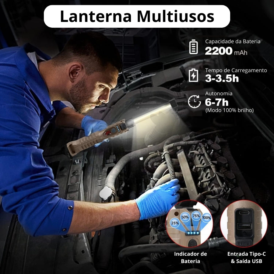 ✅ Utilização multifuncional da lanterna, reparação de automóveis, campismo, caminhadas noturnas, entre outros;