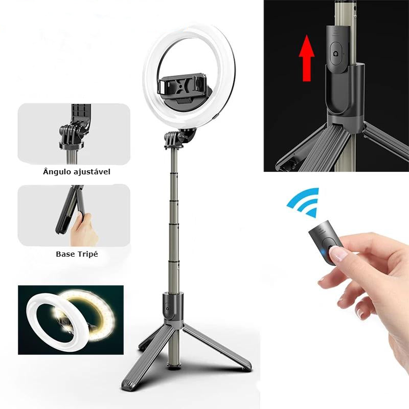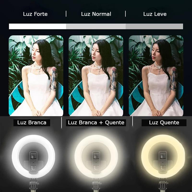 A ring light contem uma estrutura dobrável, super leve e portátil, para poder levar para qualquer lugar. Contém 3 níveis de iluminação para que possa ajustar às suas necessidades.