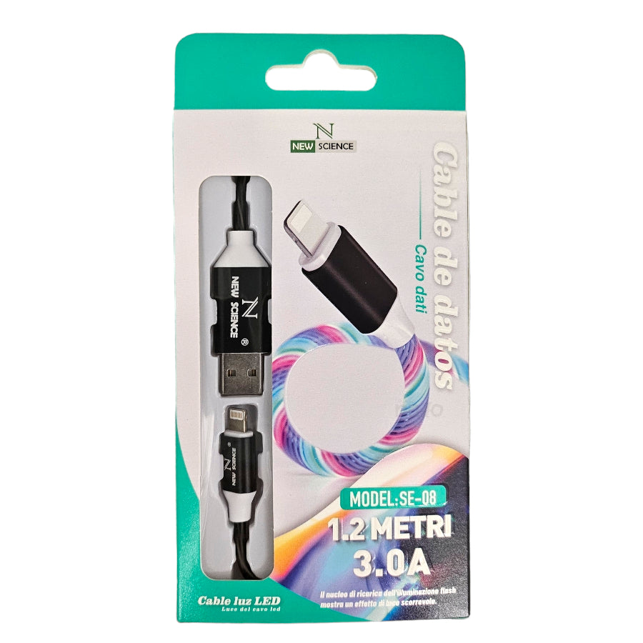 Um cabo que irá iluminar os espaços em que o utilizar, ideal para carregar dispositivos móveis ou para transferir dados.