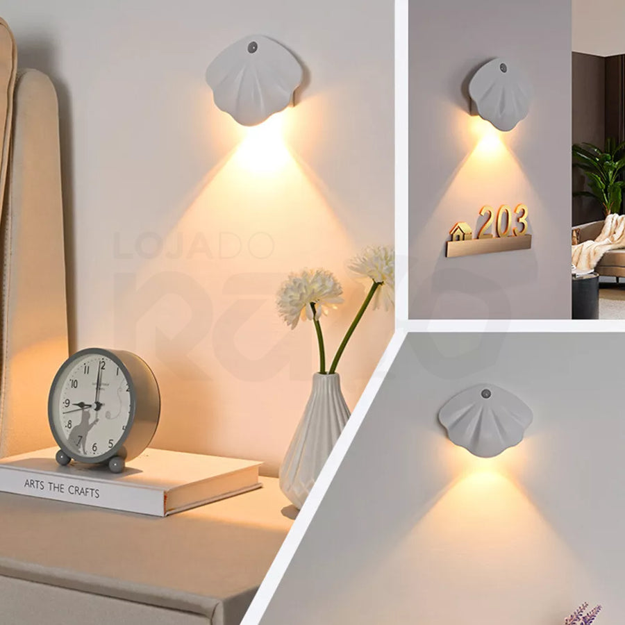 Adicione praticidade e elegância ao seu espaço com a luz de indução com sensor de movimento em forma de concha!