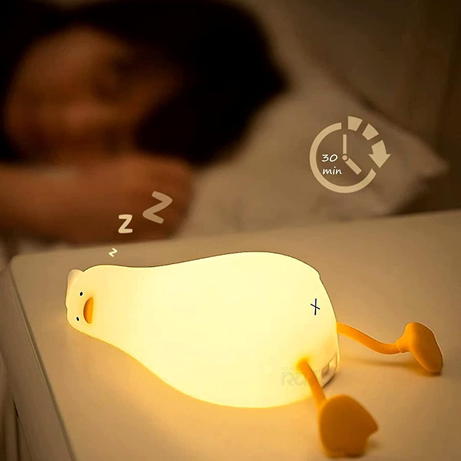 A luz de presença em forma de pato, contém um design fofo e macio, com três níveis de intensidade da luz, basta tocar no topo para ajustar o brilho consoante a ocasião.