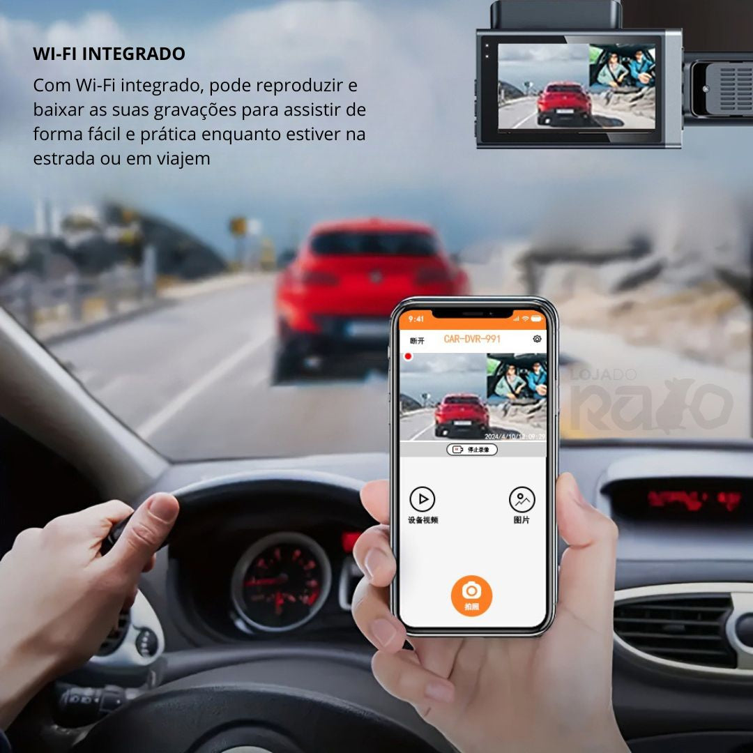 ✅ Lente dupla — grava simultaneamente a parte frontal e traseira do veículo
