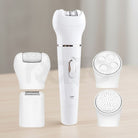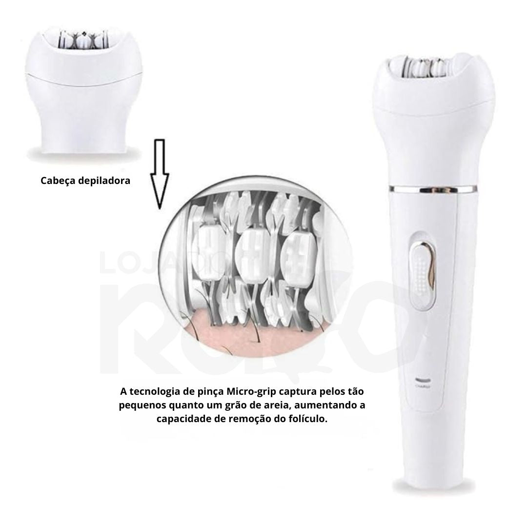 ✅ 5 funções num só dispositivo — depilação, aparagem, massagem, limpeza facial e pedicura