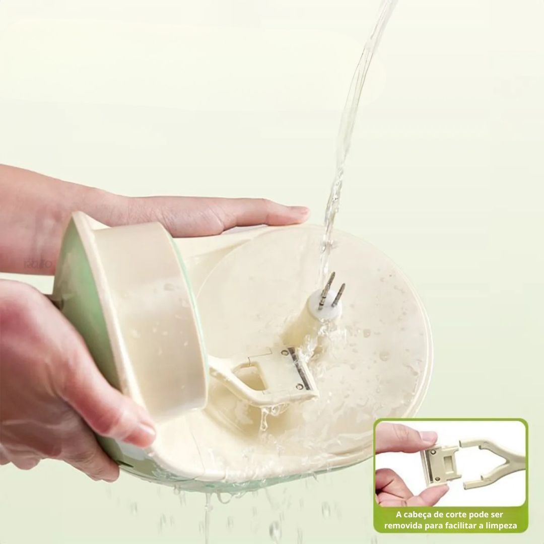 - Modelo recarregável inclui descascador externo para maior comodidade