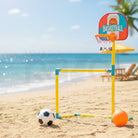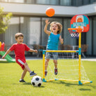 Este conjunto une duas modalidades populares — futebol e basquetebol — num só brinquedo, ideal para brincar dentro de casa ou no exterior.