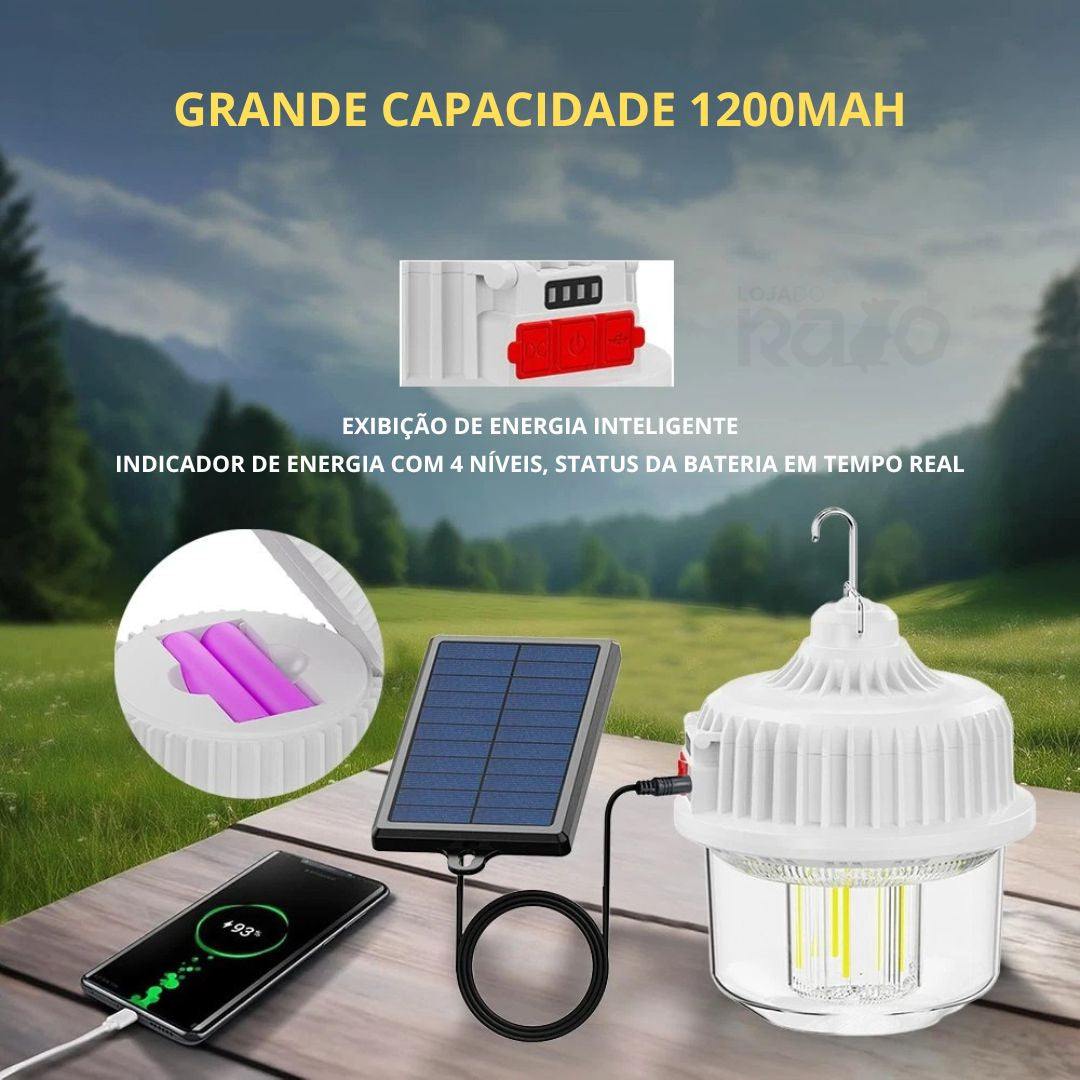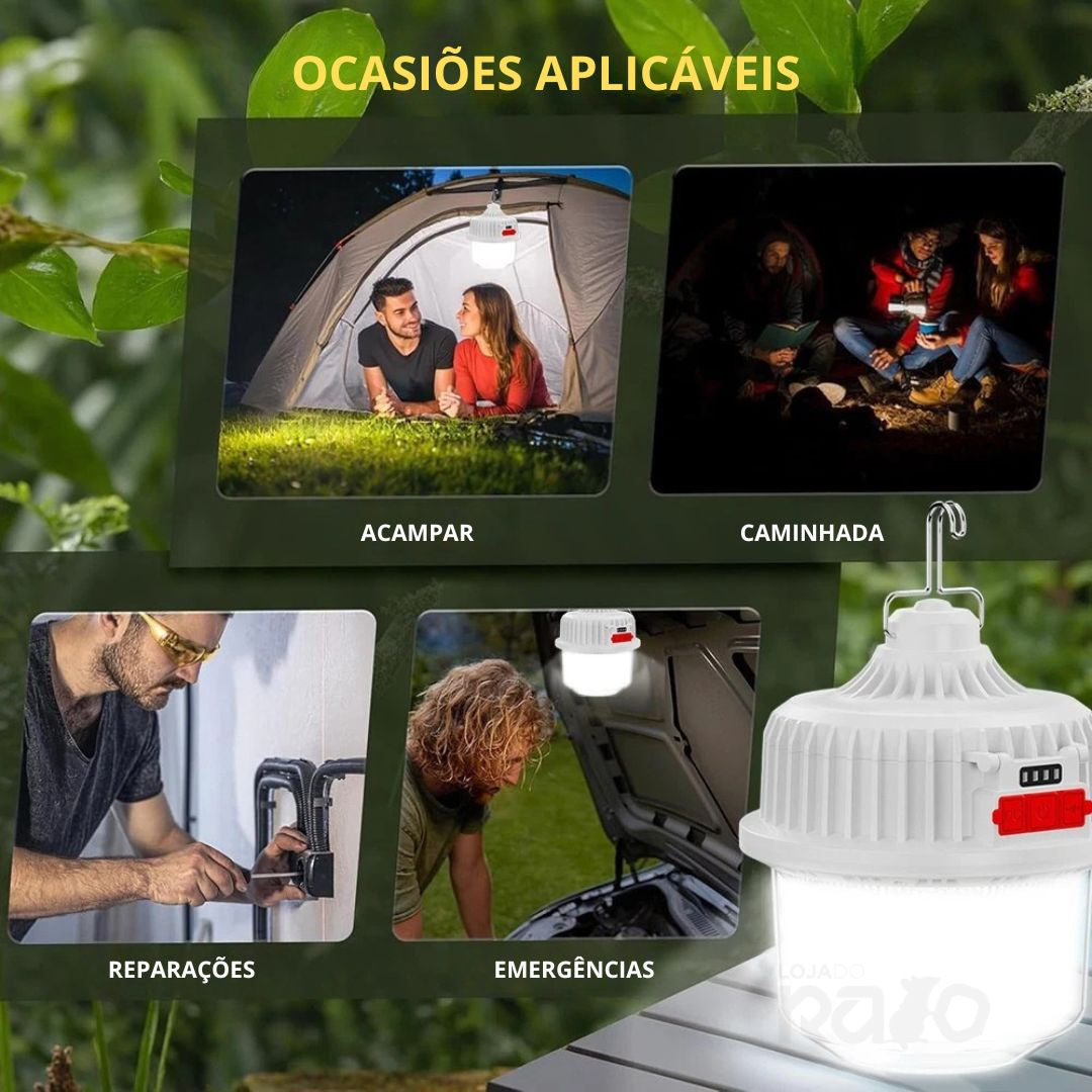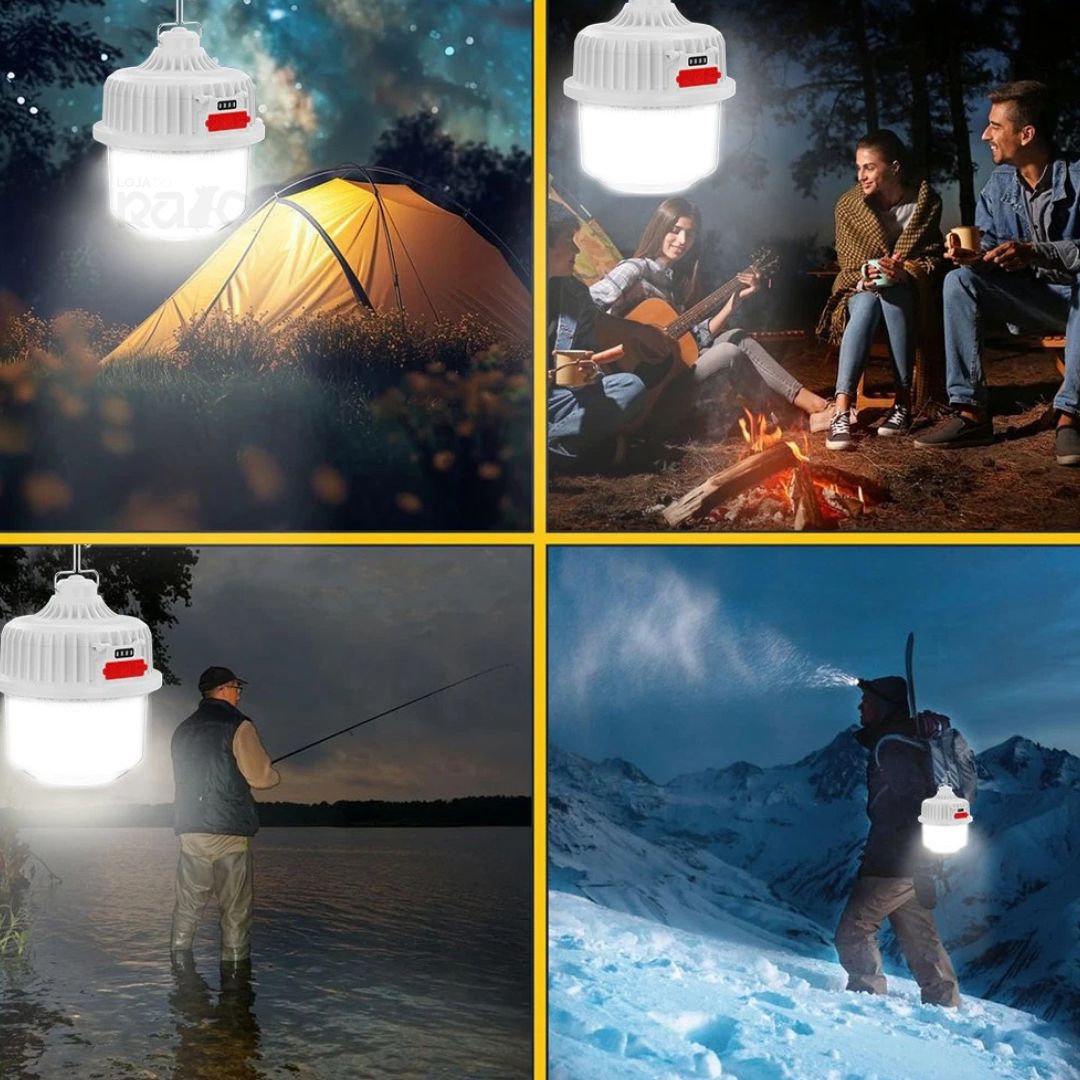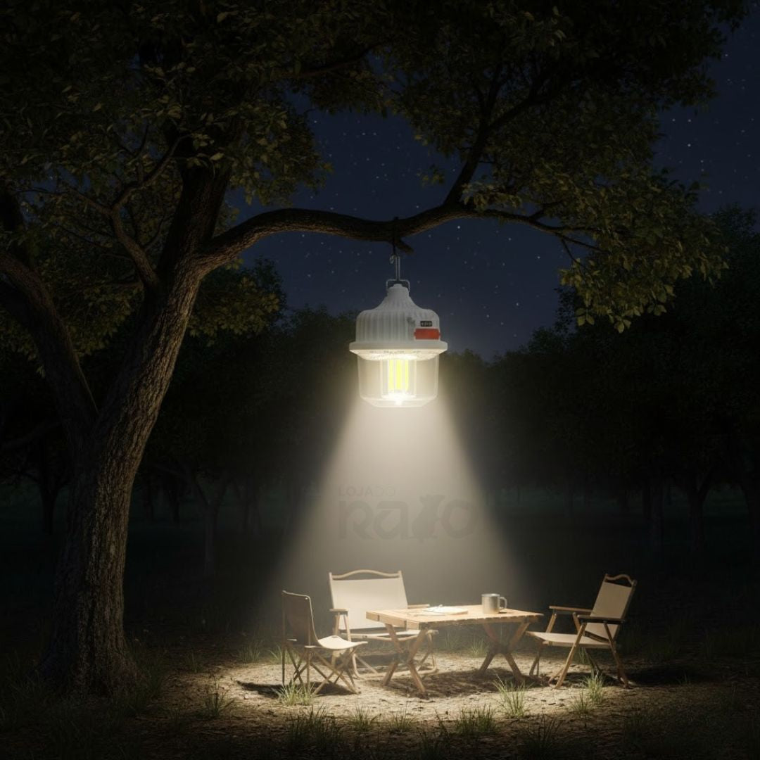 Ideal para uso em exteriores, campismo, emergências ou cortes de energia, combina durabilidade, autonomia e praticidade num só acessório.