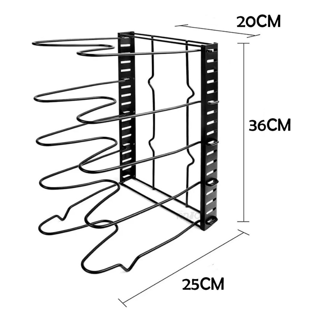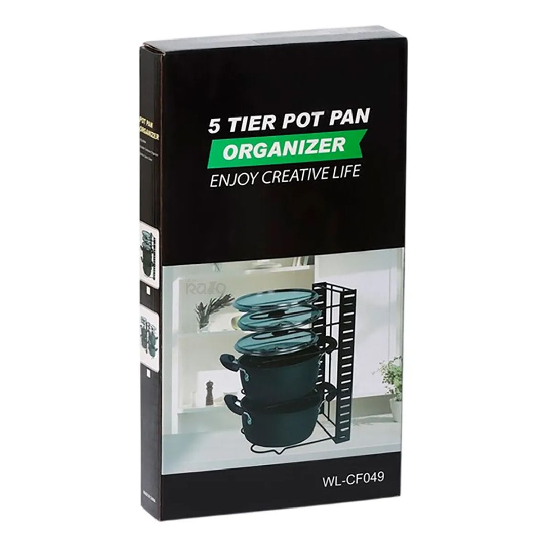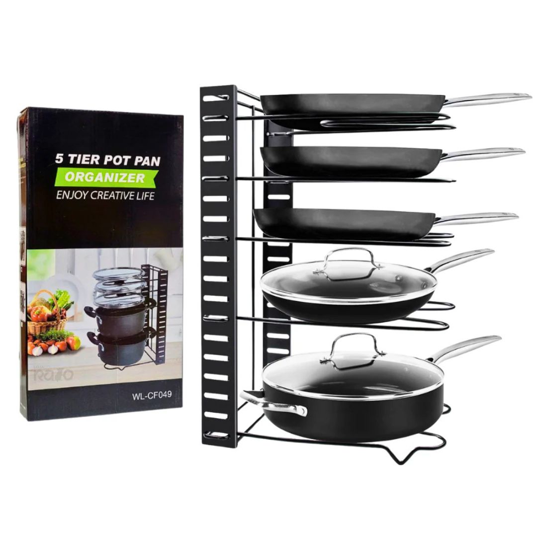 Com o Organizador de Panelas de 5 Níveis, a sua cozinha ganha funcionalidade e estilo. Ideal para quem valoriza a organização, este suporte permite empilhar as panelas, protegendo os utensílios e libertando espaço nos armários ou bancadas.
