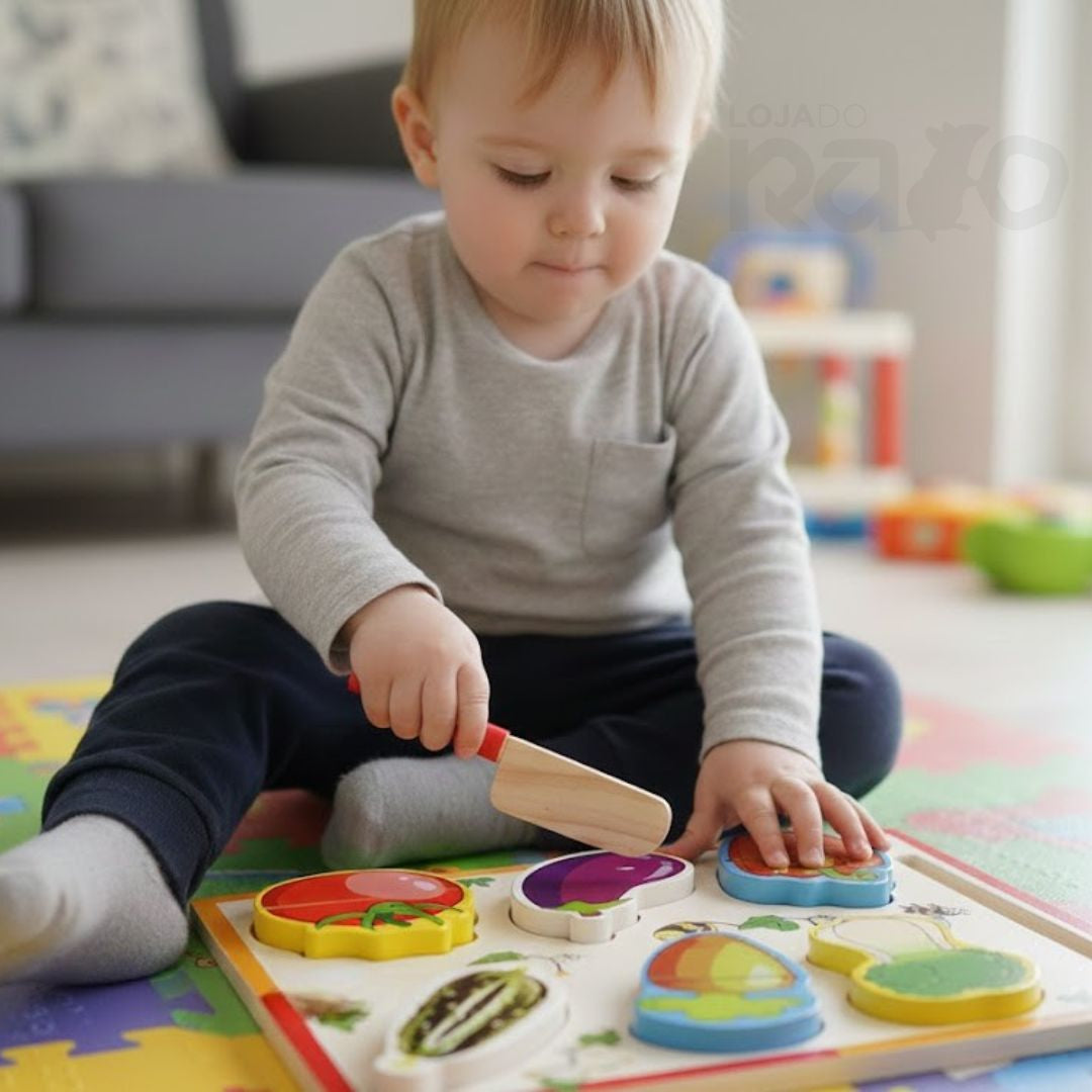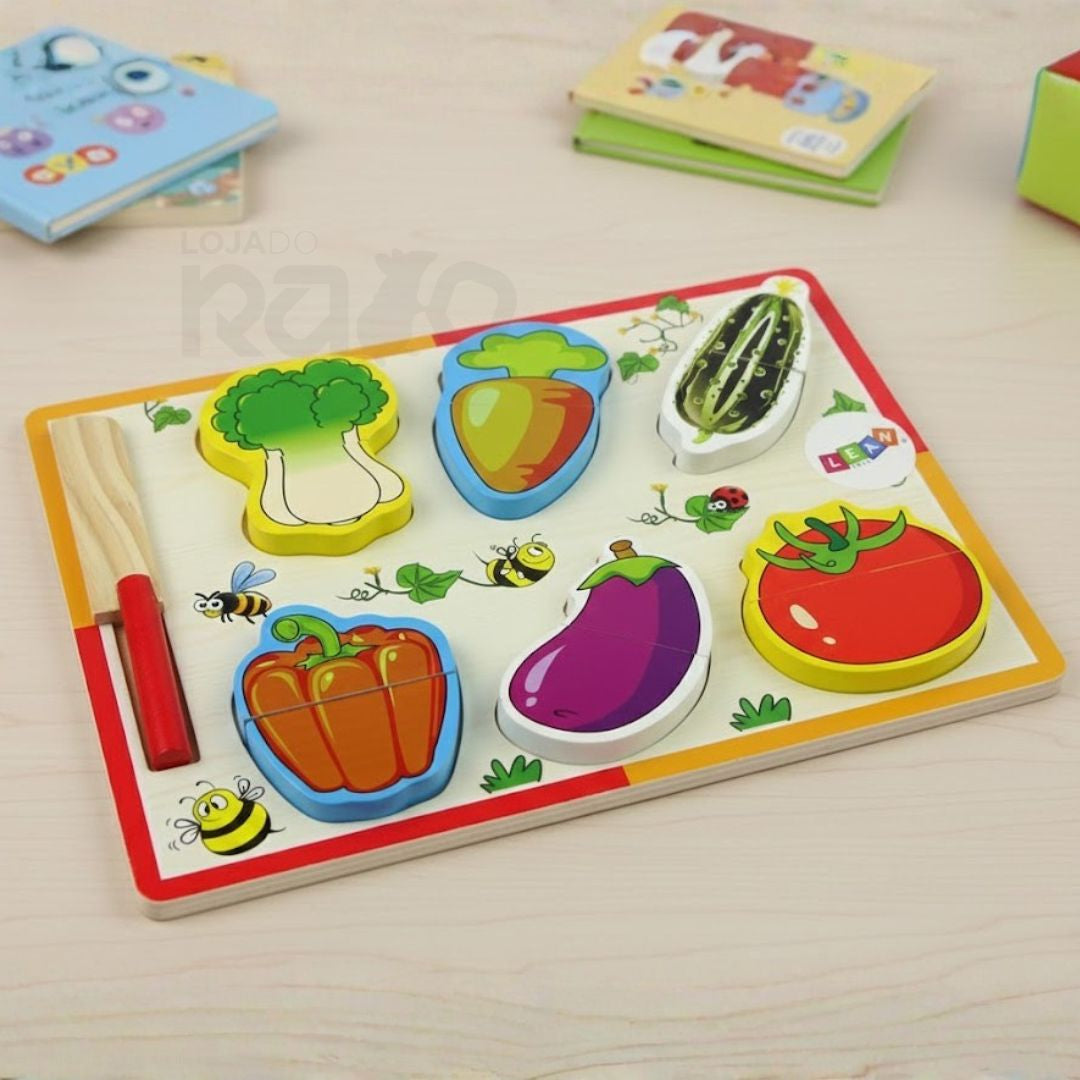 O Puzzle Educativo em Madeira - Legumes foi desenvolvido para crianças que adoram brincar à cozinha e imitar os adultos.