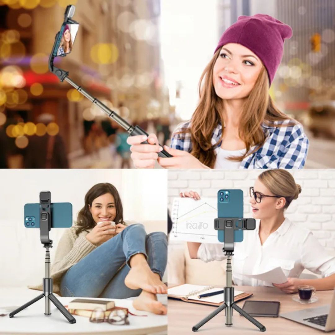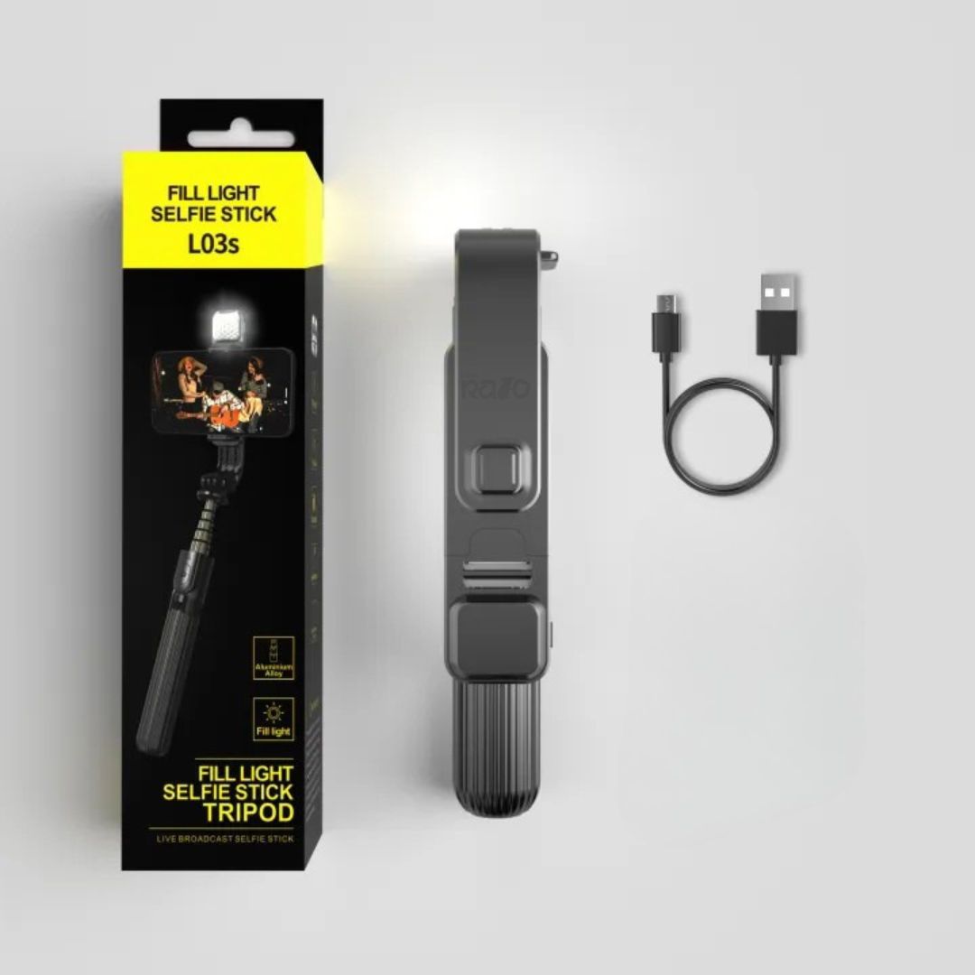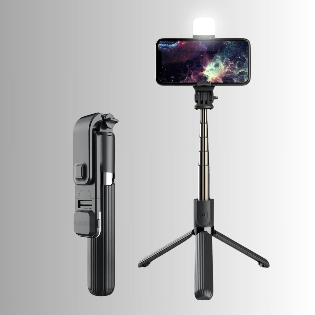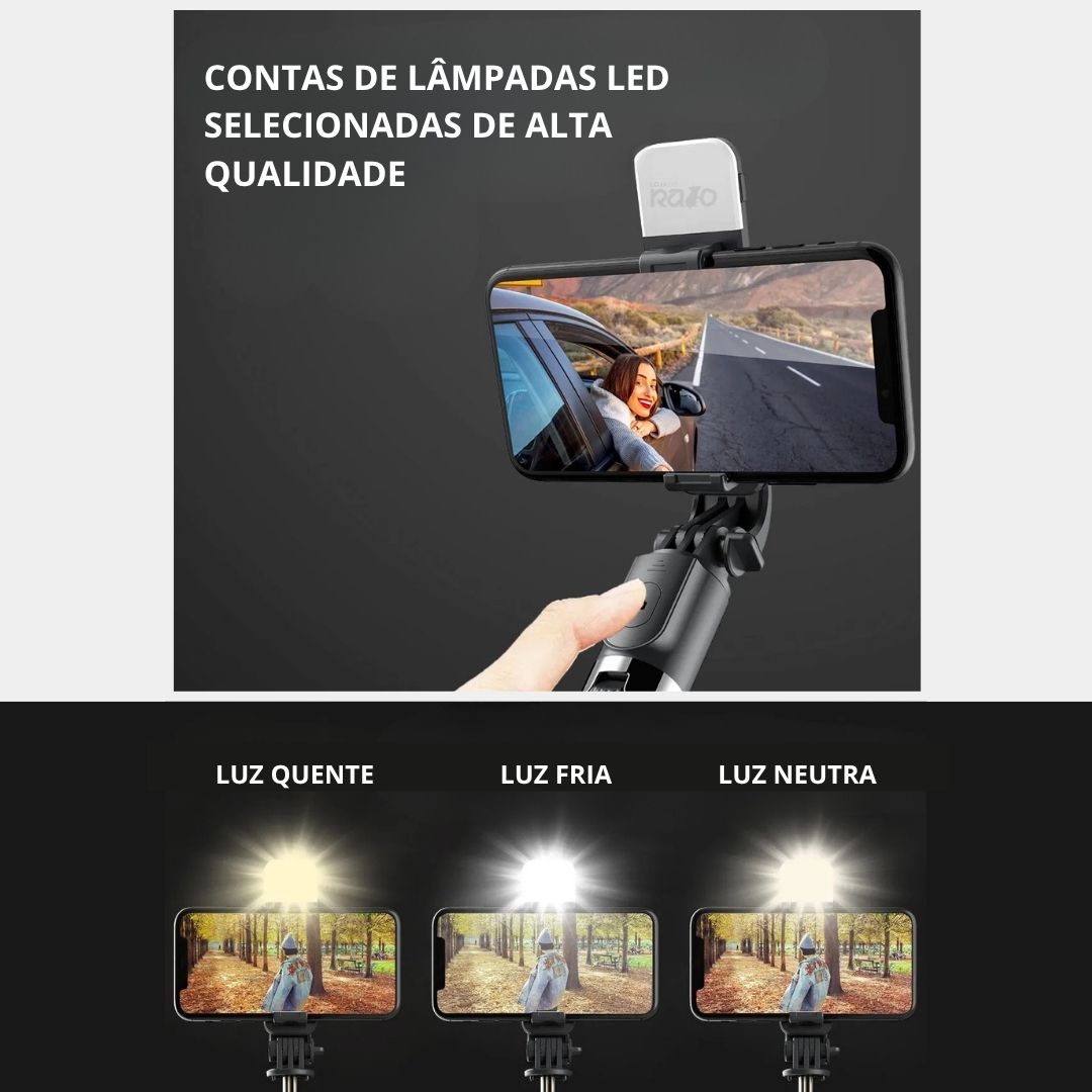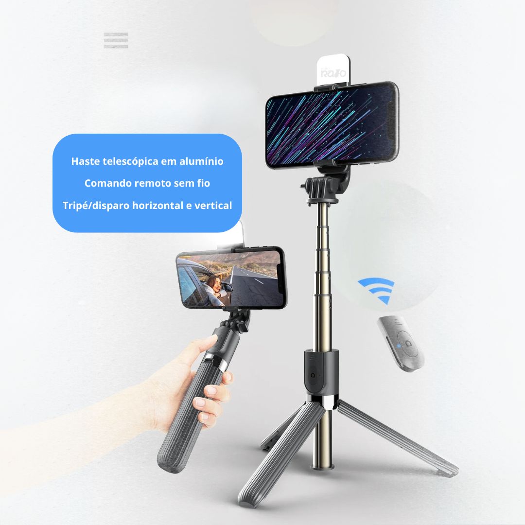 Eleve a qualidade das suas fotografias e vídeos com o Selfie Stick Tripé c/ Luz LED e Comando - L03s.