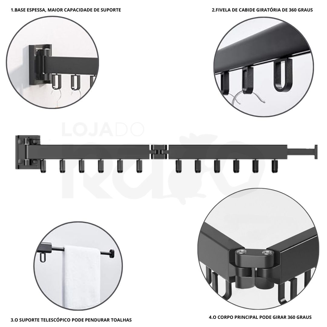 ✅ Suporta bastante peso, ideal para roupas, toalhas e acessórios