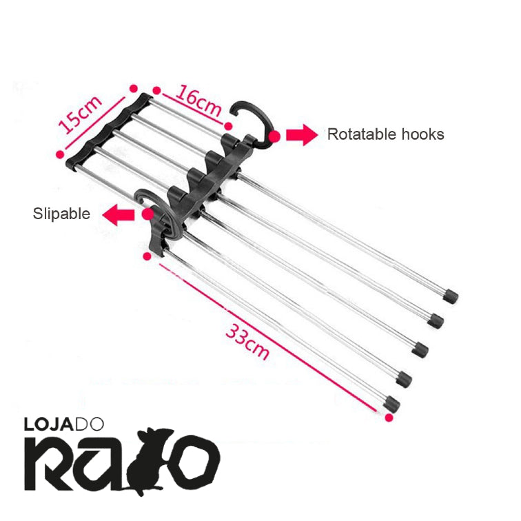 Acabe com a desarrumação no guarda-roupa e maximize o espaço disponível com o Cabide de Calças 5 em 1.