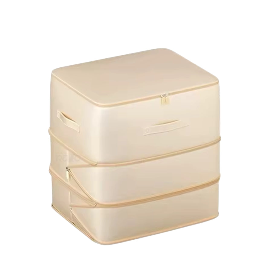 A caixa de arrumação dobrável de 100L é a solução prática e inteligente para organizar roupas, edredões, toalhas e muito mais, maximizando o espaço disponível.
