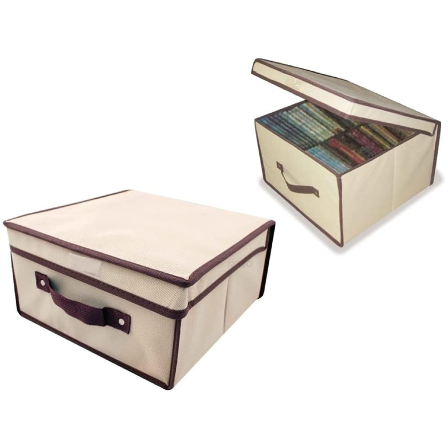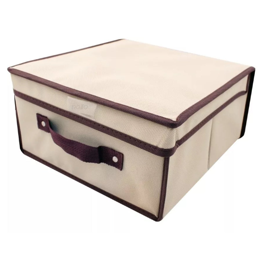 Caixa de armazenamento de tecido de tamanho médio com tampa, para guardar roupa, mantas entre outros.