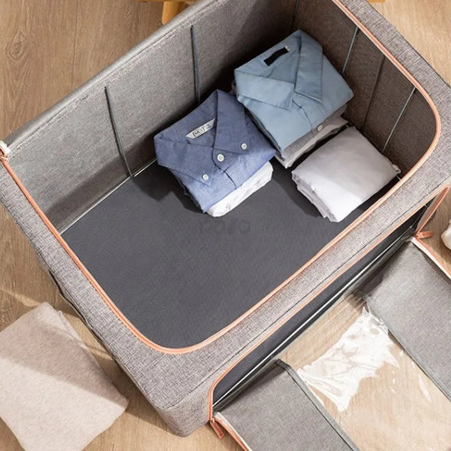 A caixa organizadora oferece espaço para organizar roupa, brinquedos ou até mesmo documentos.