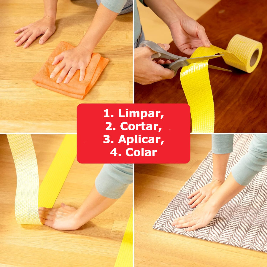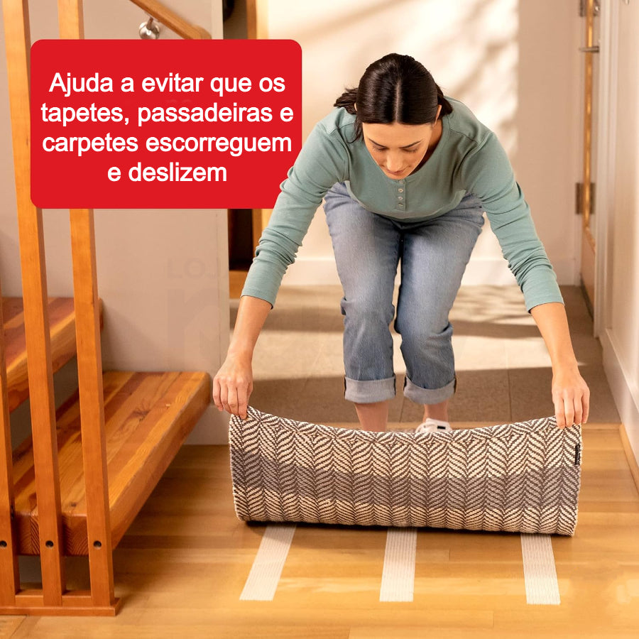 Mantenha os seus tapetes firmemente no lugar com a fita de dupla face!