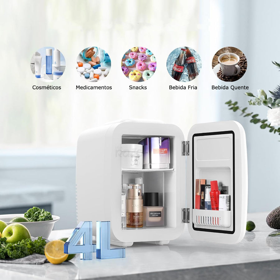 Com o mini frigorífico terá sempre produtos frescos ou quentes ao seu alcance, seja em casa ou em viagens. Com a funcionalidade de frio e quente, pode armazenar medicamentos, cosméticos, bebidas frias ou quentes e muito mais.