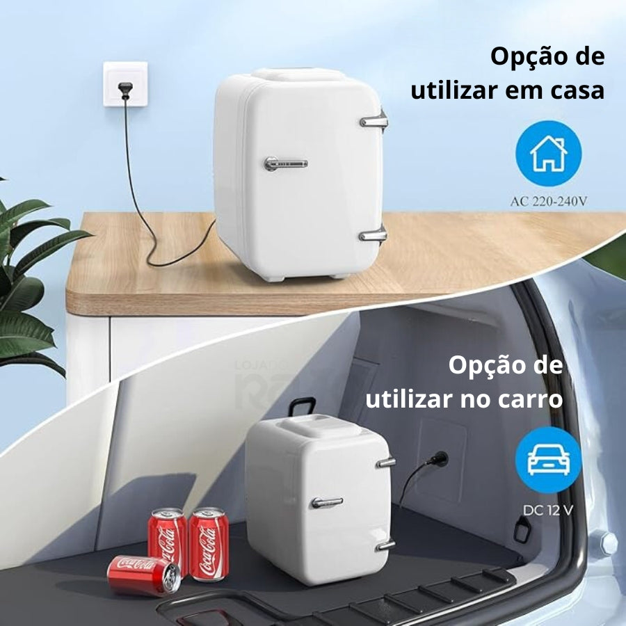 Mantenha as suas bebidas e snacks sempre frescos em qualquer lugar com o Mini Frigorífico Portátil!
