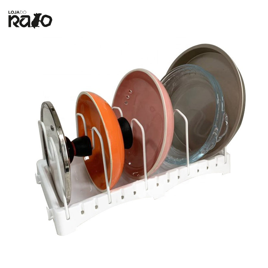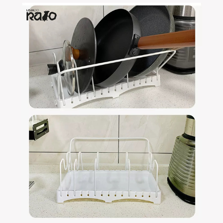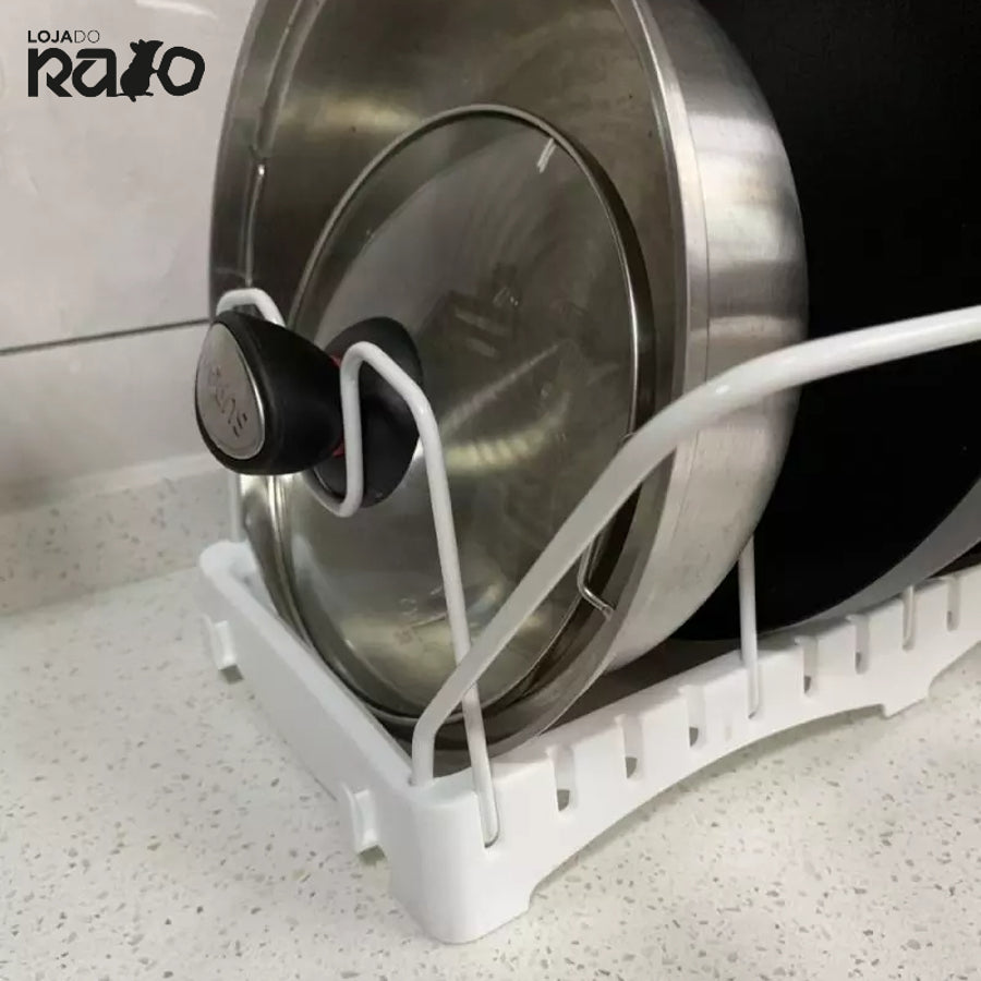 Organizador multifuncional e ajustável, com o qual é possível guardar e retirar panelas e frigideiras facilmente agarrando-as pela pega. É regulável de forma a poder adaptá-lo aos tamanhos das panelas que utiliza e assim ter um melhor aproveitamento do espaço.
