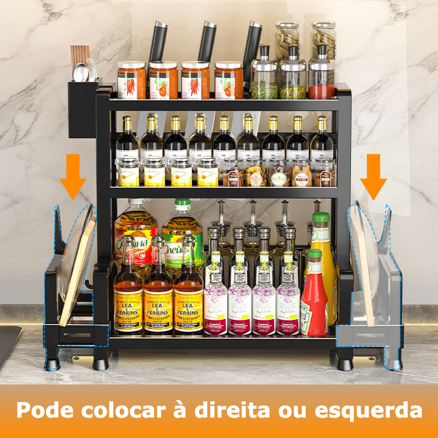 O organizador multifuncional para cozinha, disponível em versões de 2 e 3 andares, é a solução ideal para otimizar o espaço e manter a sua cozinha organizada.