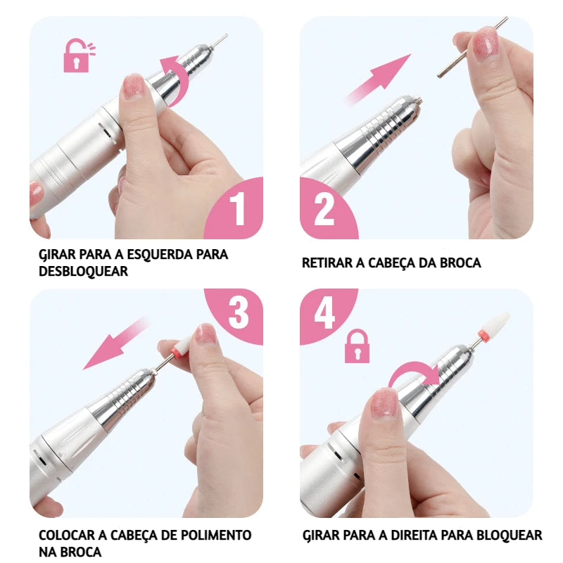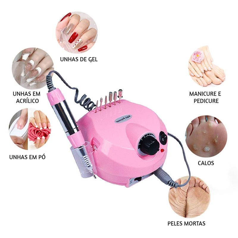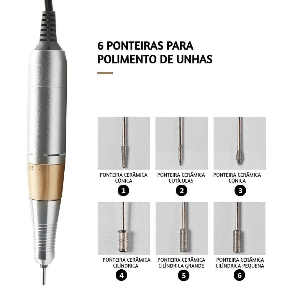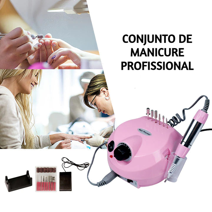 O Conjunto de Manicure Profissional é o mais recente do mercado com um design ergonómico e compacto tornando-se um equipamento indispensável na área da estética. Projetado com diferentes cabeças para obter vários efeitos de polimento.