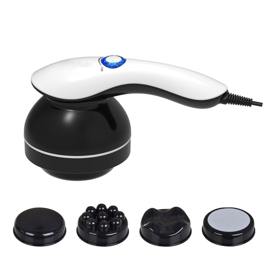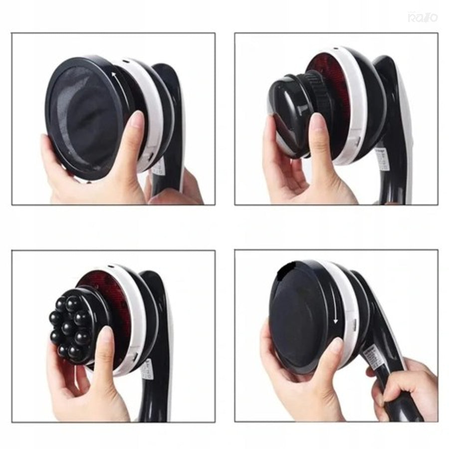 Com 4 cabeças de massagem diferentes, botão para controlar facilmente a velocidade de vibração. Com uma cabeça de superfície lisa para braços e rosto, uma superfície ondulado, para várias áreas do pescoço, ombros e coxa, uma superfície frisada para alívio de cintura, e por fim, uma superfície pedra-pomes para as peles mortas.