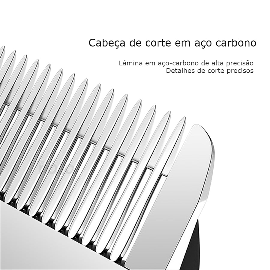 Os pentes de corte com diferentes comprimentos, dão à máquina uma maior versatilidade na hora de cortar o cabelo ou a barba.