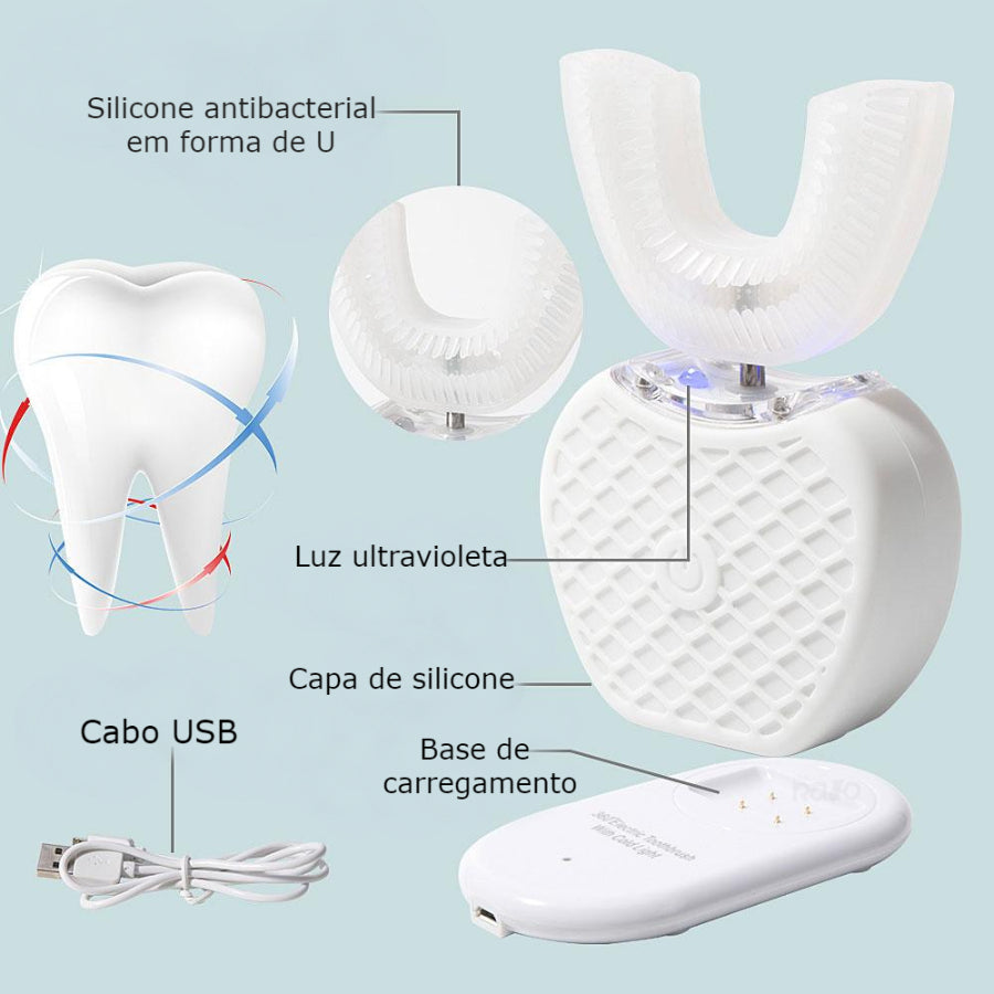 Escova de Dentes Elétrica em Forma de U - Limpeza, Massagem e Branqueamento