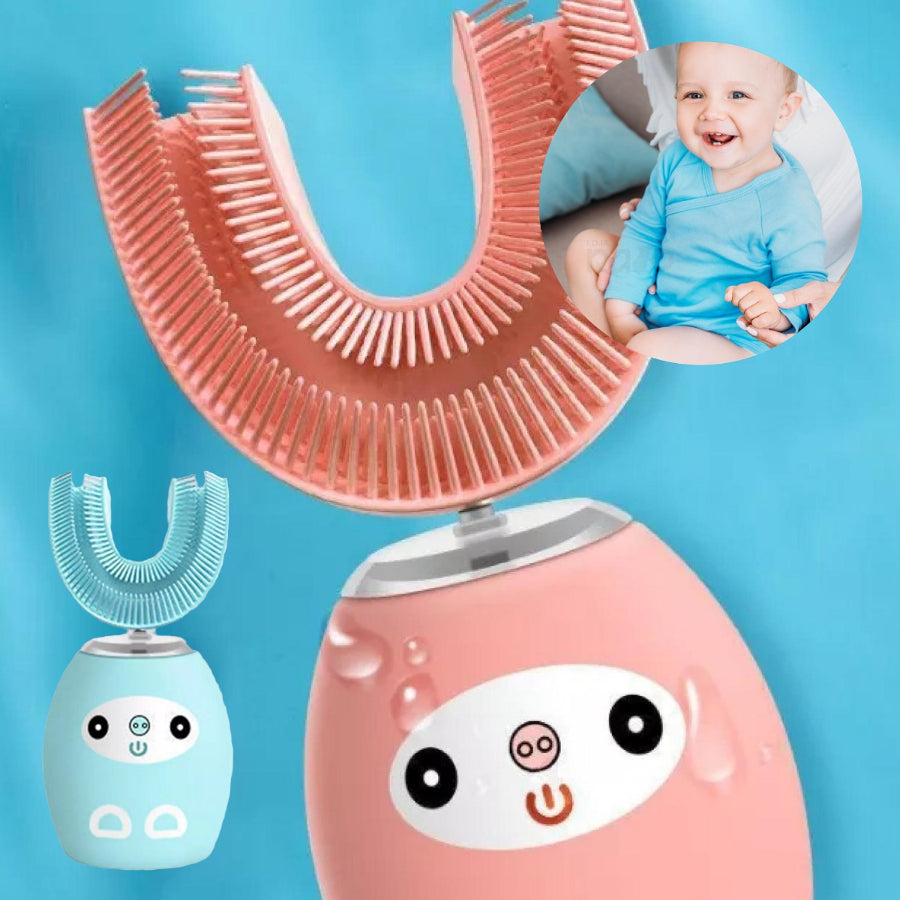 Escova de dentes elétrica infantil em forma de U é ideal para as crianças mais teimosas que não querem escovar os seus dentinhos.